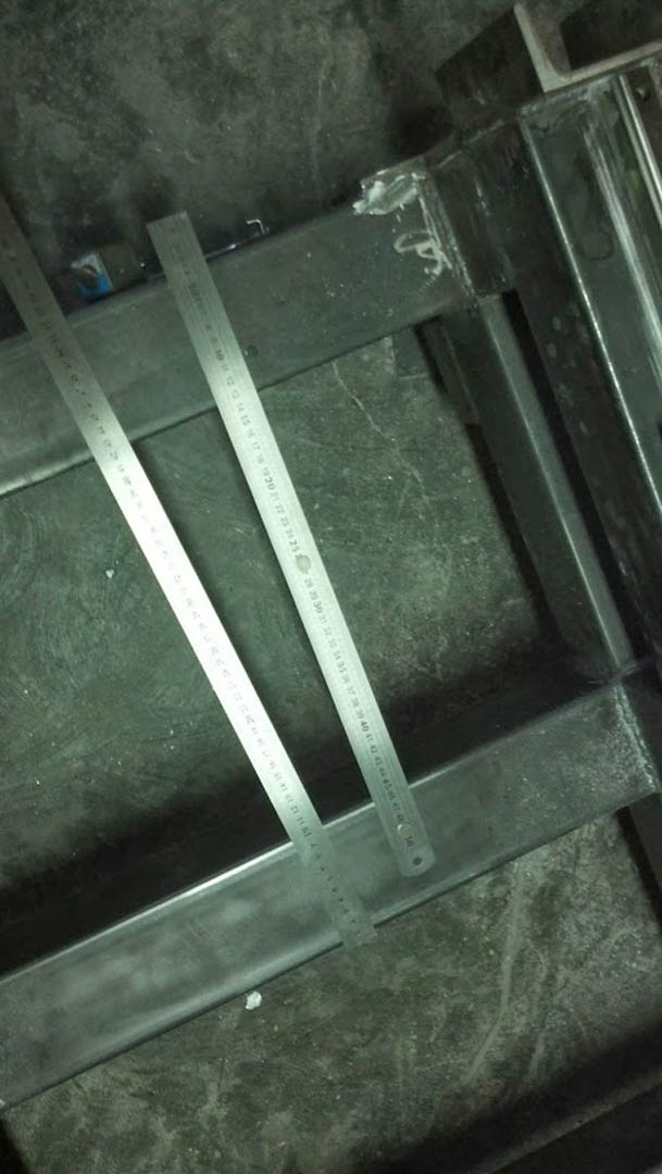 I then did the same for the second rail checking for parallellness (is that a word?) in both directions with the first rail as a reference but also checking the second rail against the frame to make sure it wasn't out. I then did the same weld procedure for the second rail and it turned out pretty square and parallel....probably more from good luck than skill!