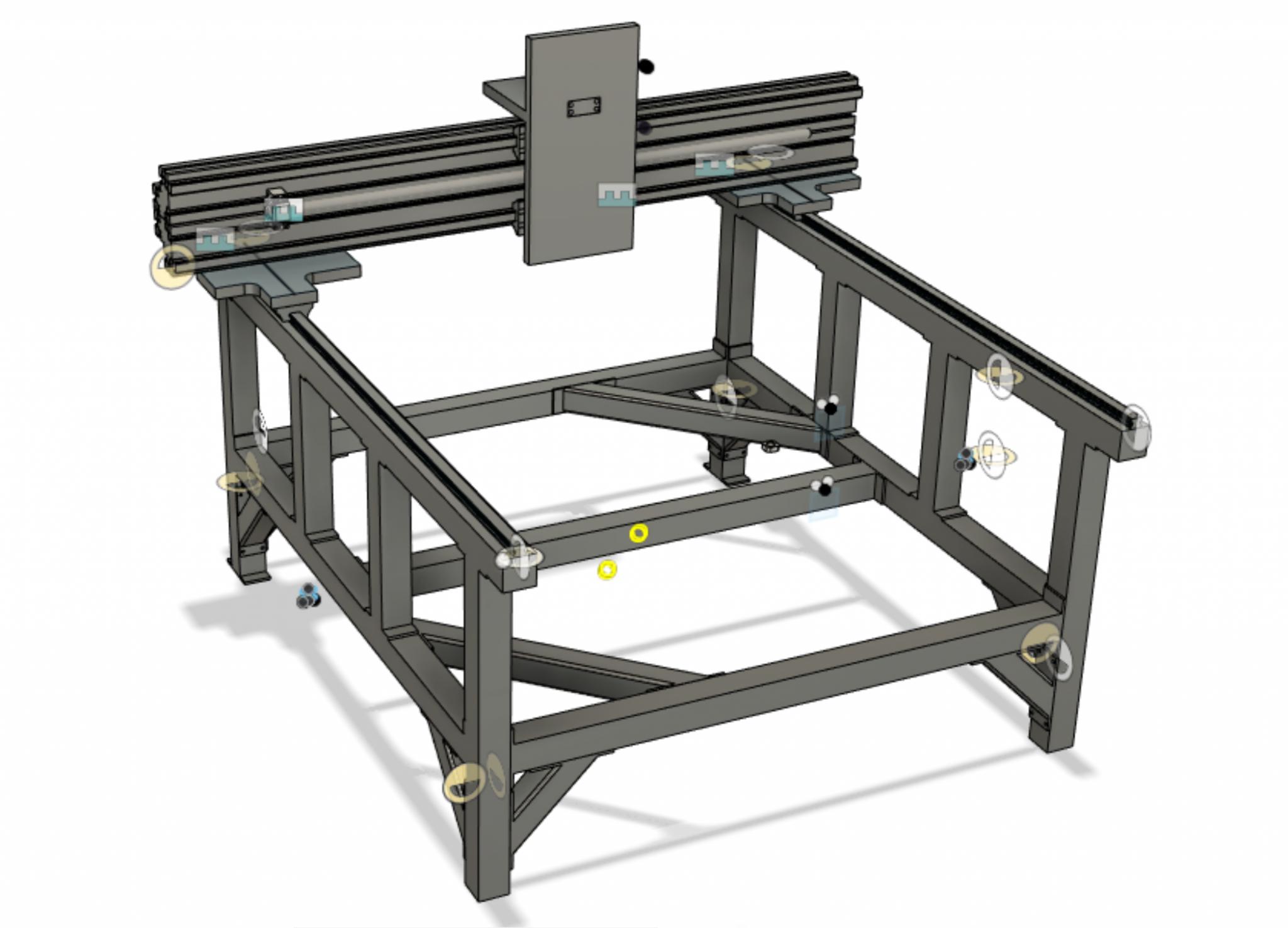 Pointless using such a heavily built gantry on such a weak flimsy frame.! You seriously need to brace that frame-up.