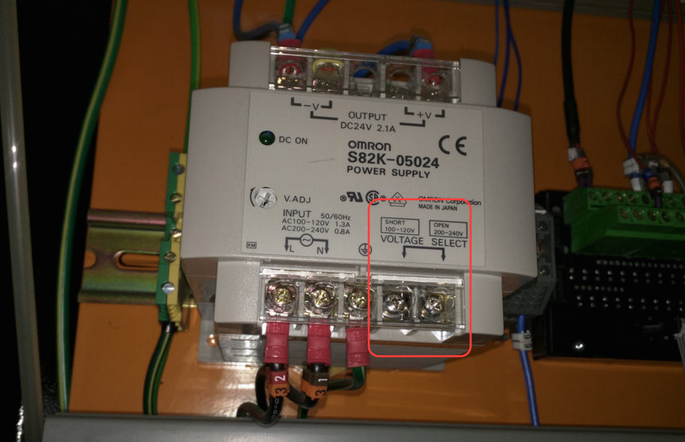 Then here is a photo of the same 24V PSU, take a note of the 'jumper' on the bottom right. What is this set to take as AC input voltage, 220 or 110V?