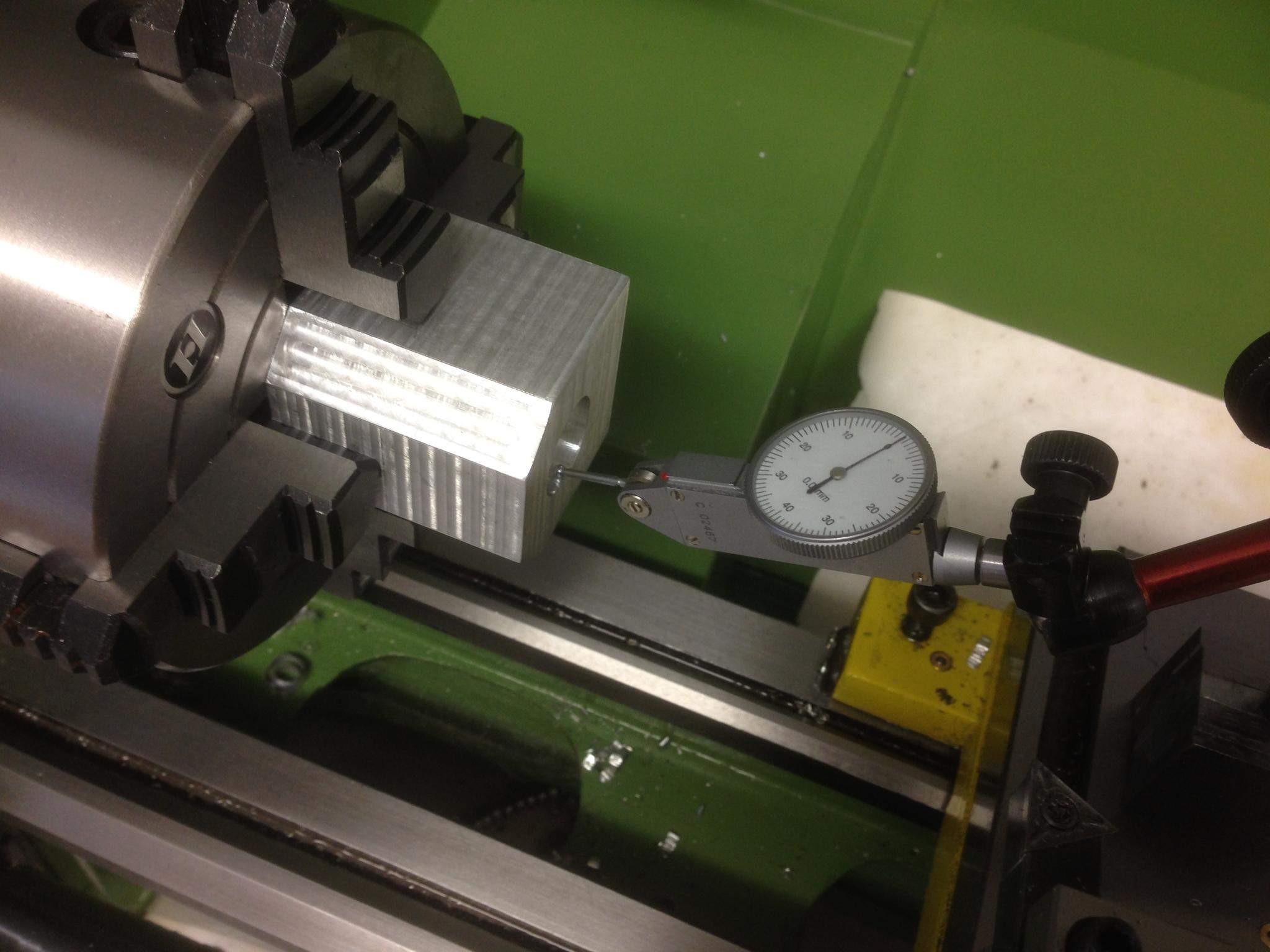 I swapped the 3 jaw over to the 4 jaw chuck and dialled it in using the bore I'd machined out on the CNC. Got it to within 0.05 mm, so pleased with that.