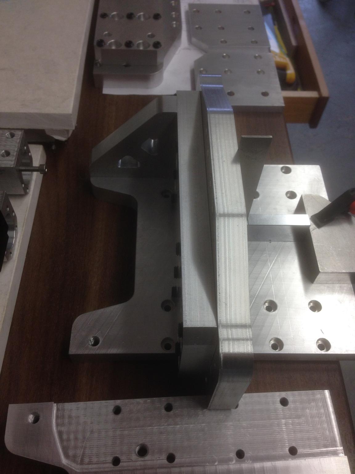 Still needs holes drilled and tapped in the sides, but decided to do a trial fit. It connects the tram plates to the side support plates: