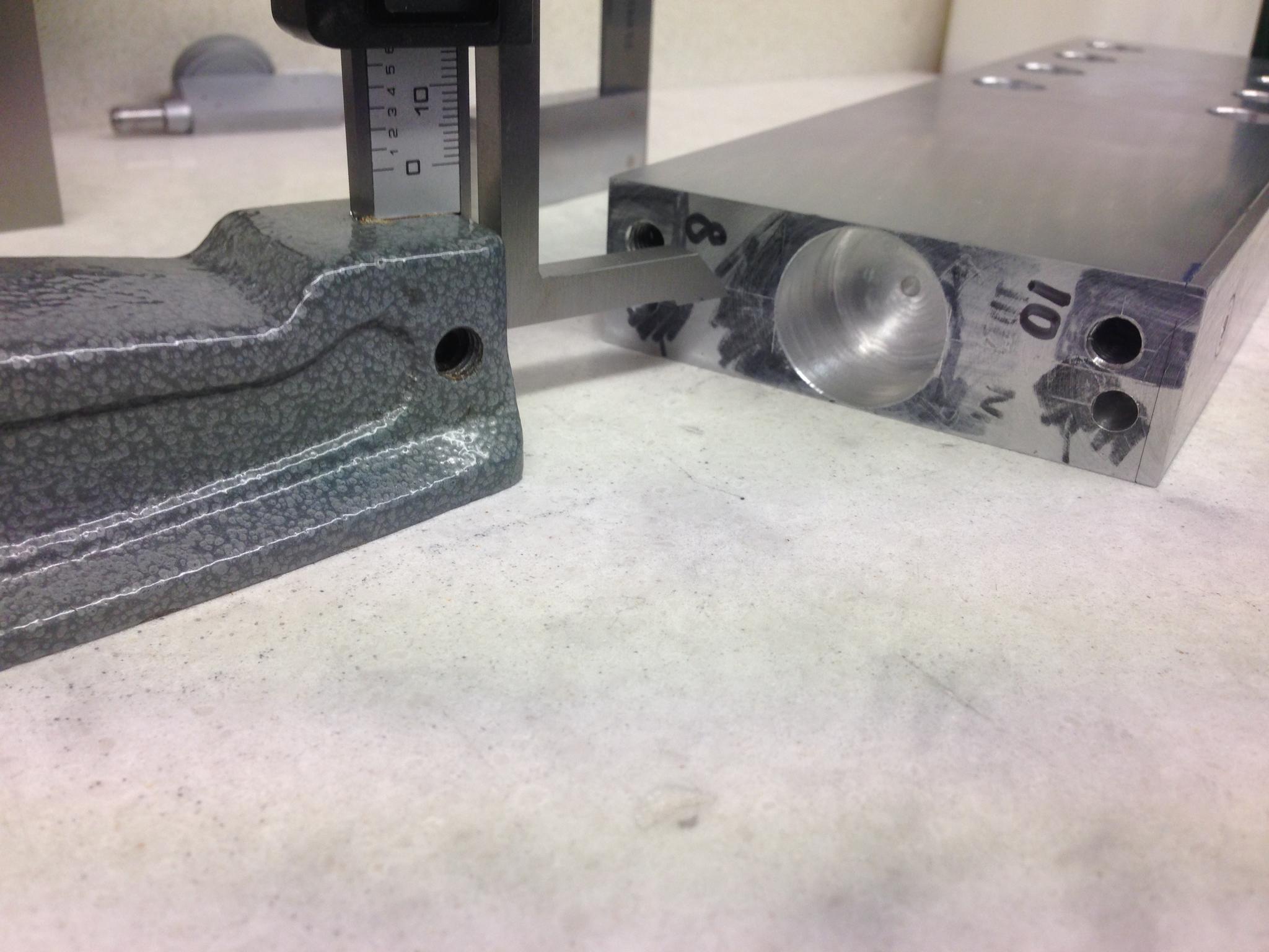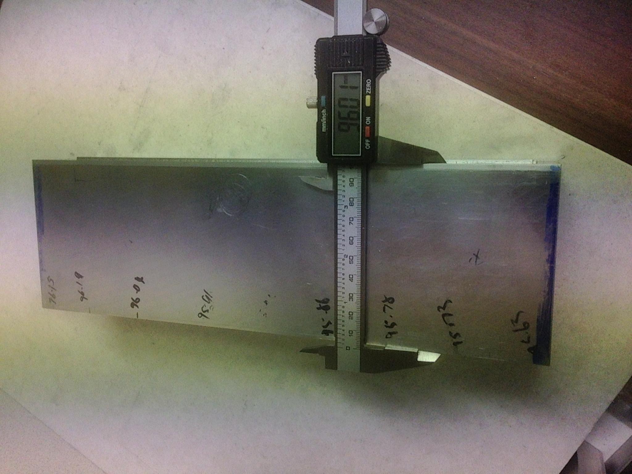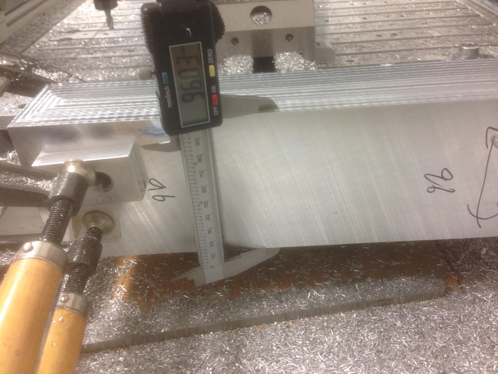 Skimmed it all down to 96 mm trying to get within 96.00 - 96.05 everywhere. I used the height gauge to check progress and wrote the heights on the part. Here is it getting close.