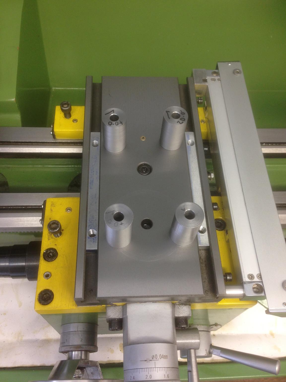 The profile pieces which make up the bed are not accurate enough to be used as a support. The sides are not flat and are not perfectly square to the bed (since that was skimmed by the machine). So I made up a 'tramming' plate: