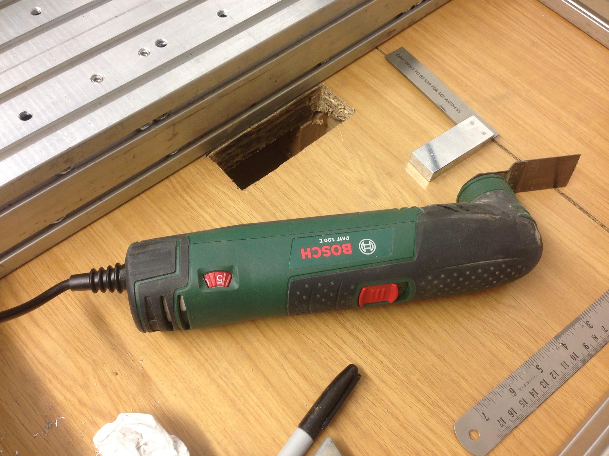 The part was too long for the machine so only one thing for it - cut a hole in the table: