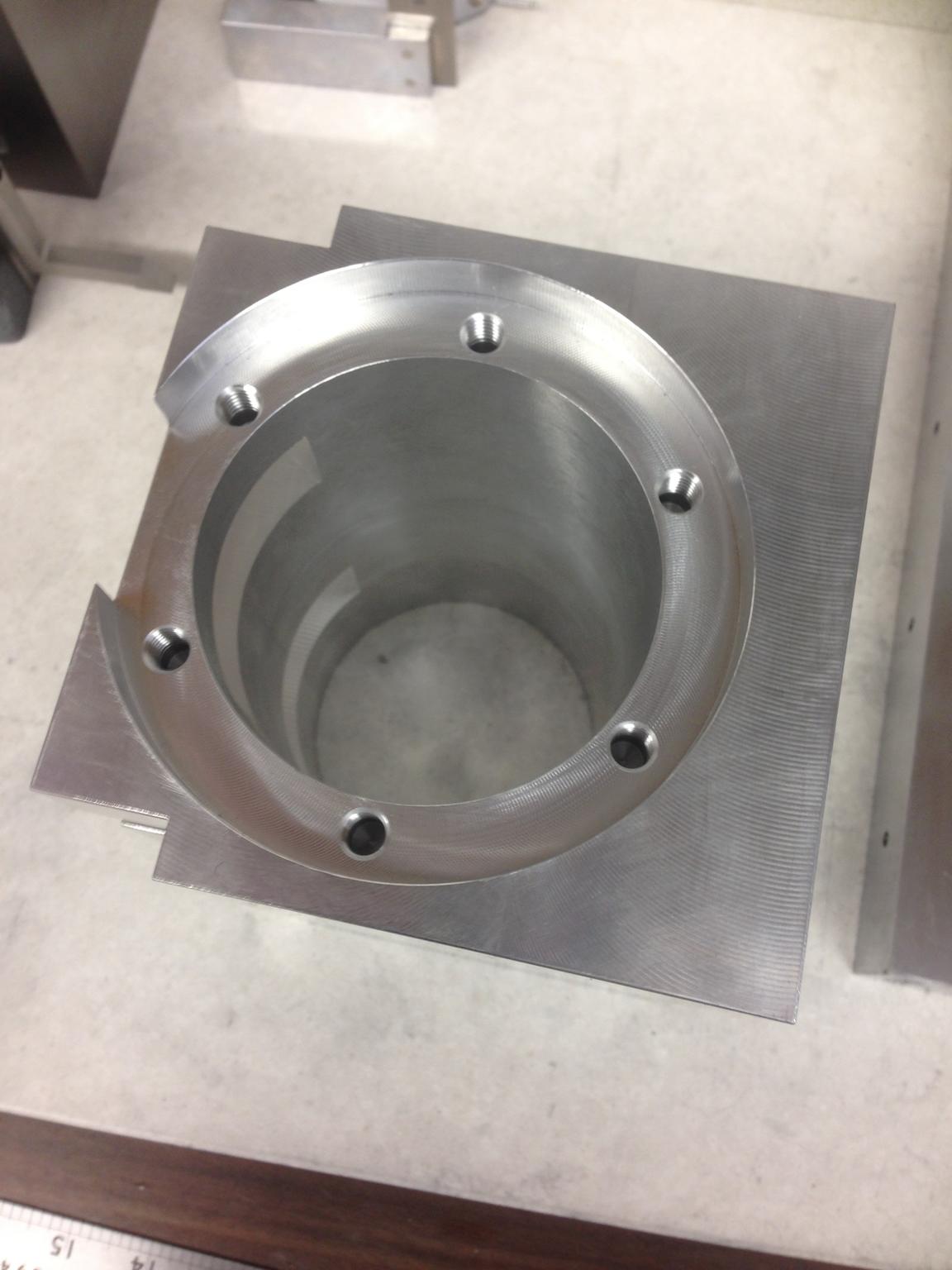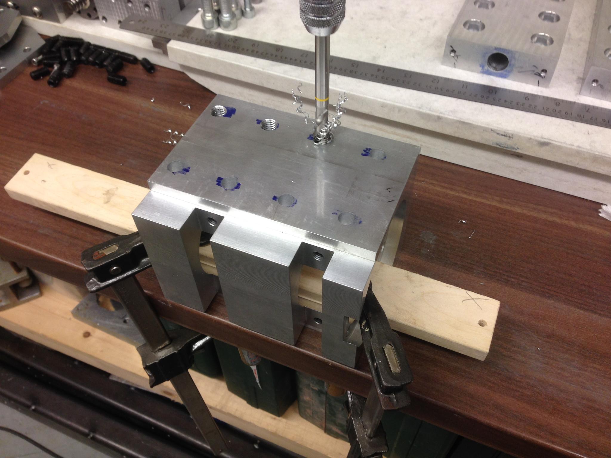 Drilled out, counter bored, and tapped: