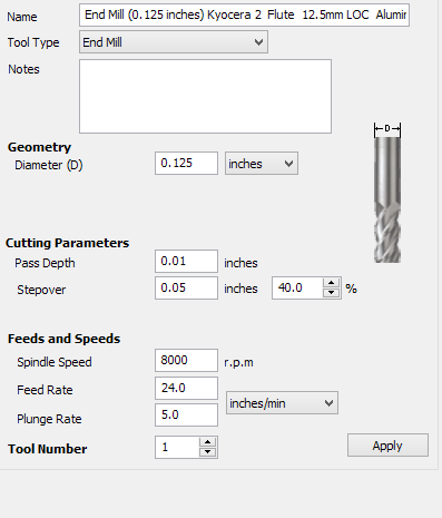 Those settings are not far off where i was, I was a little slower feed and faster rpm, that may make a difference, don't forget there is a fair bit difference between a 1/8" and 2mm tool.