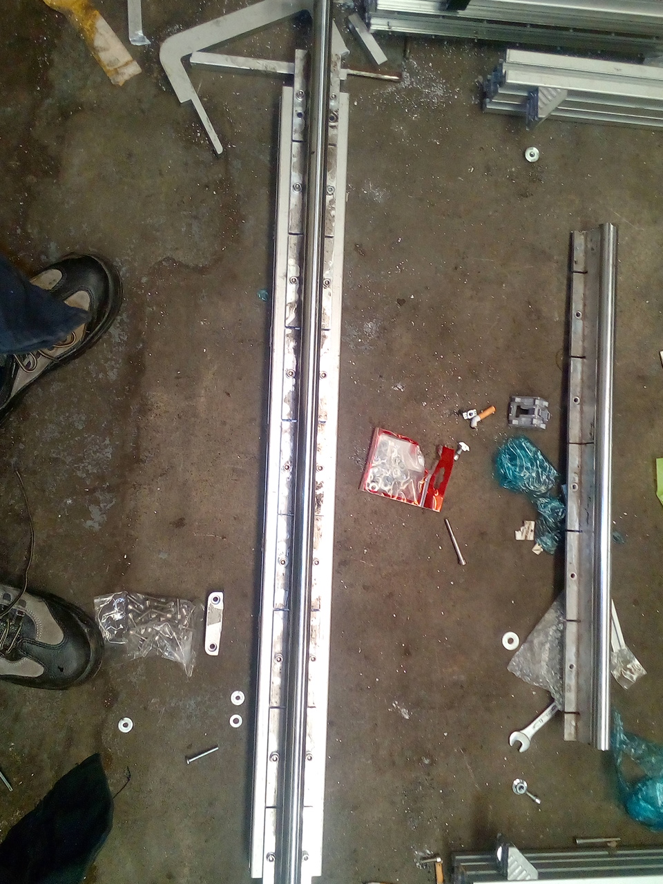 Attachment 21825 This was a real bastard lol bolting the SBR25 into the aluminium extrusion with T nuts but now both rails are bolted on finally. They are both bolted very tight against the extrusion I'm hoping the extrusion is straight ;)