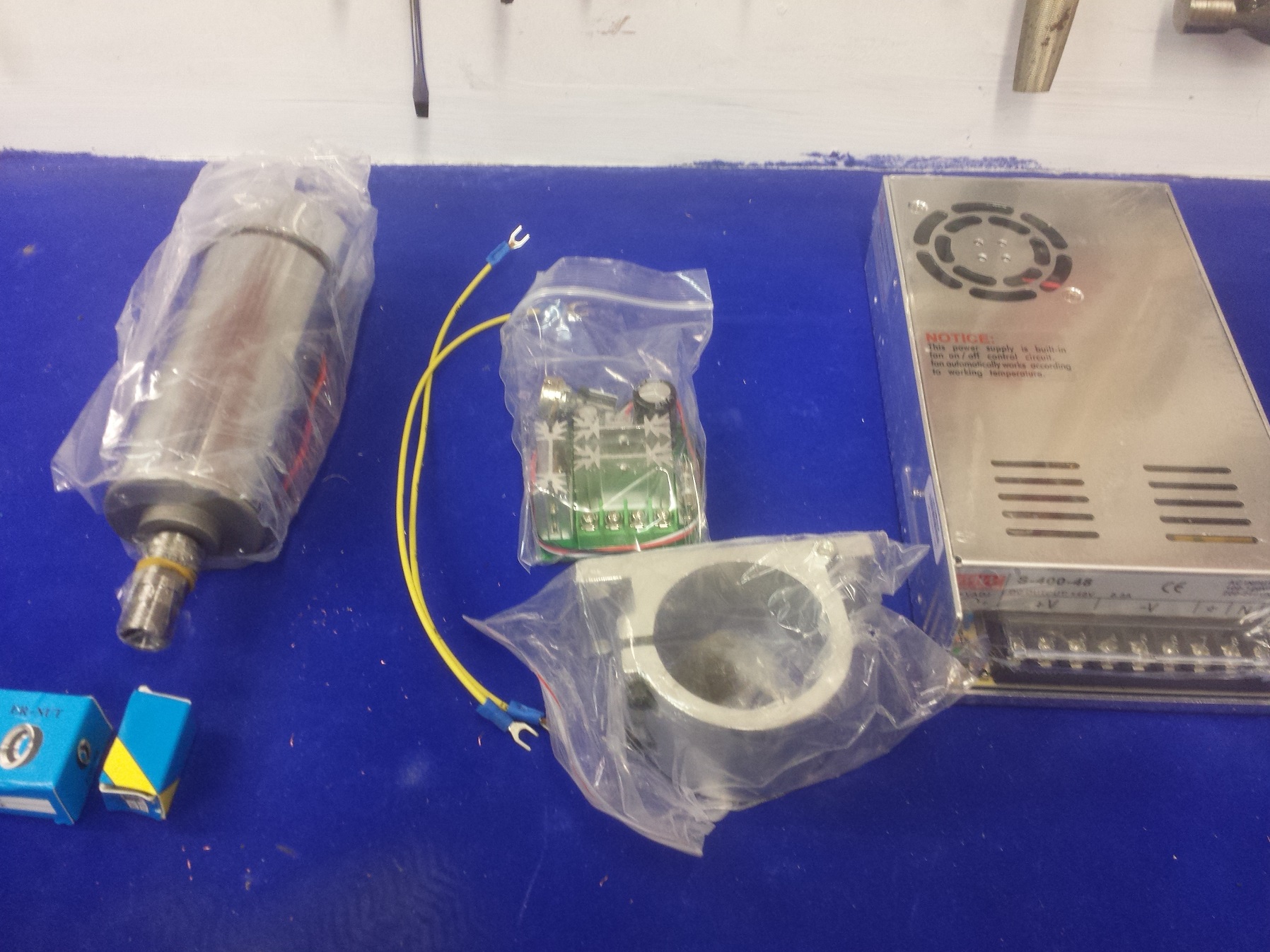 Did a bit more on the machine this weekend, my new 600w spindle and pwr supply arrived as well