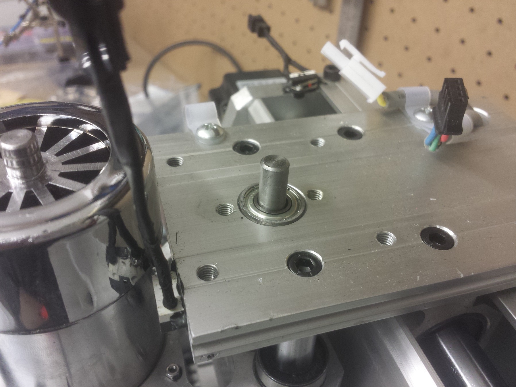 Now install the bearing again, you must make sure that the bearing is flush with the top of the housing it is seated in, I had to sand about half a mm off to achieve this, once happy tighten the 2 retaining screws and then install the motor.