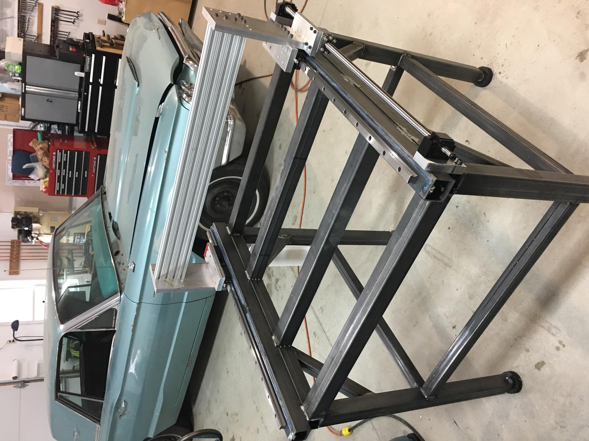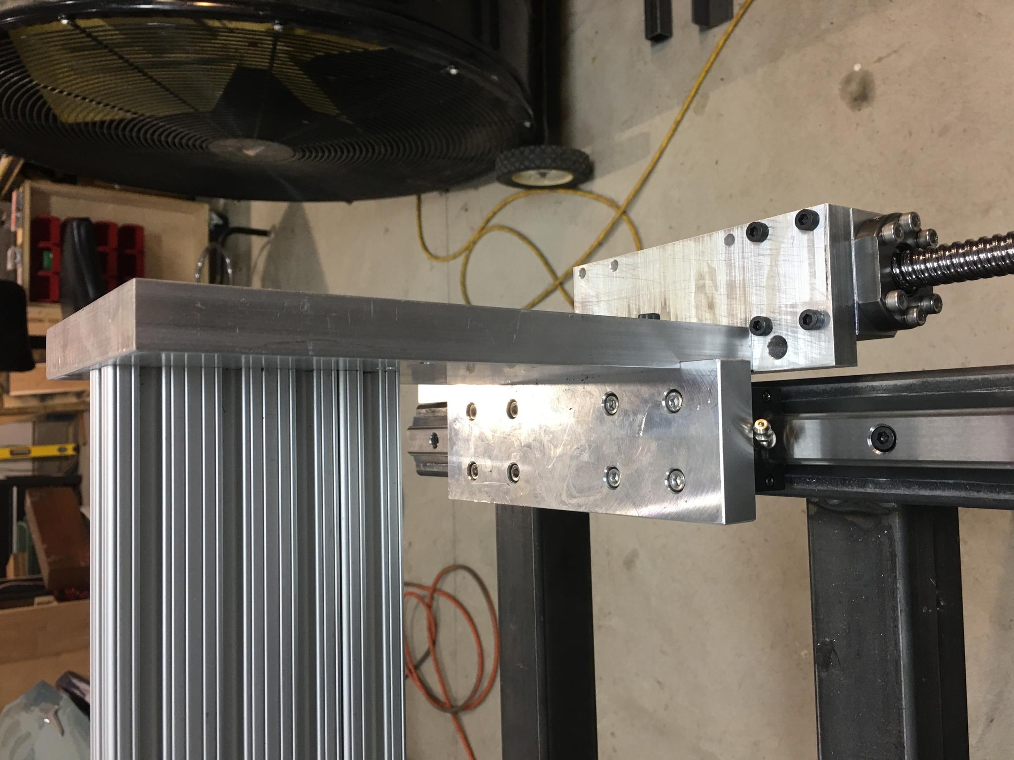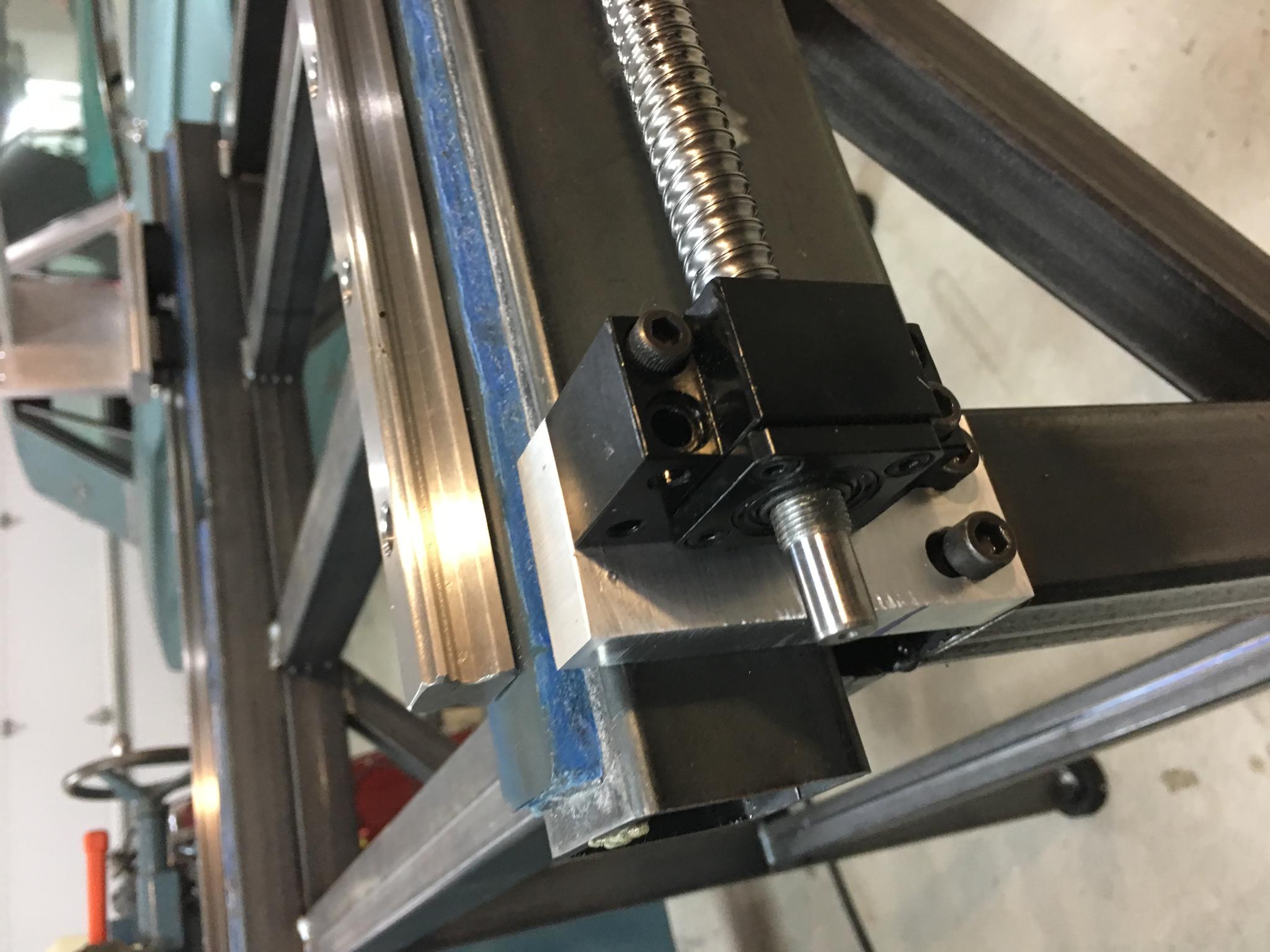 I just ordered rails and ballscrews that are 50mm longer than the ones in the pics. I intend to move the existing ones to the gantry and put the new ones in their place. This should give me bit more travel and get the ends out where I can get pulleys on them. I am thinking of driving the two Y-axis screws with a single NEMA 34 and timing belt arrangement. The X- and Z-axes will be NEMA 23.
