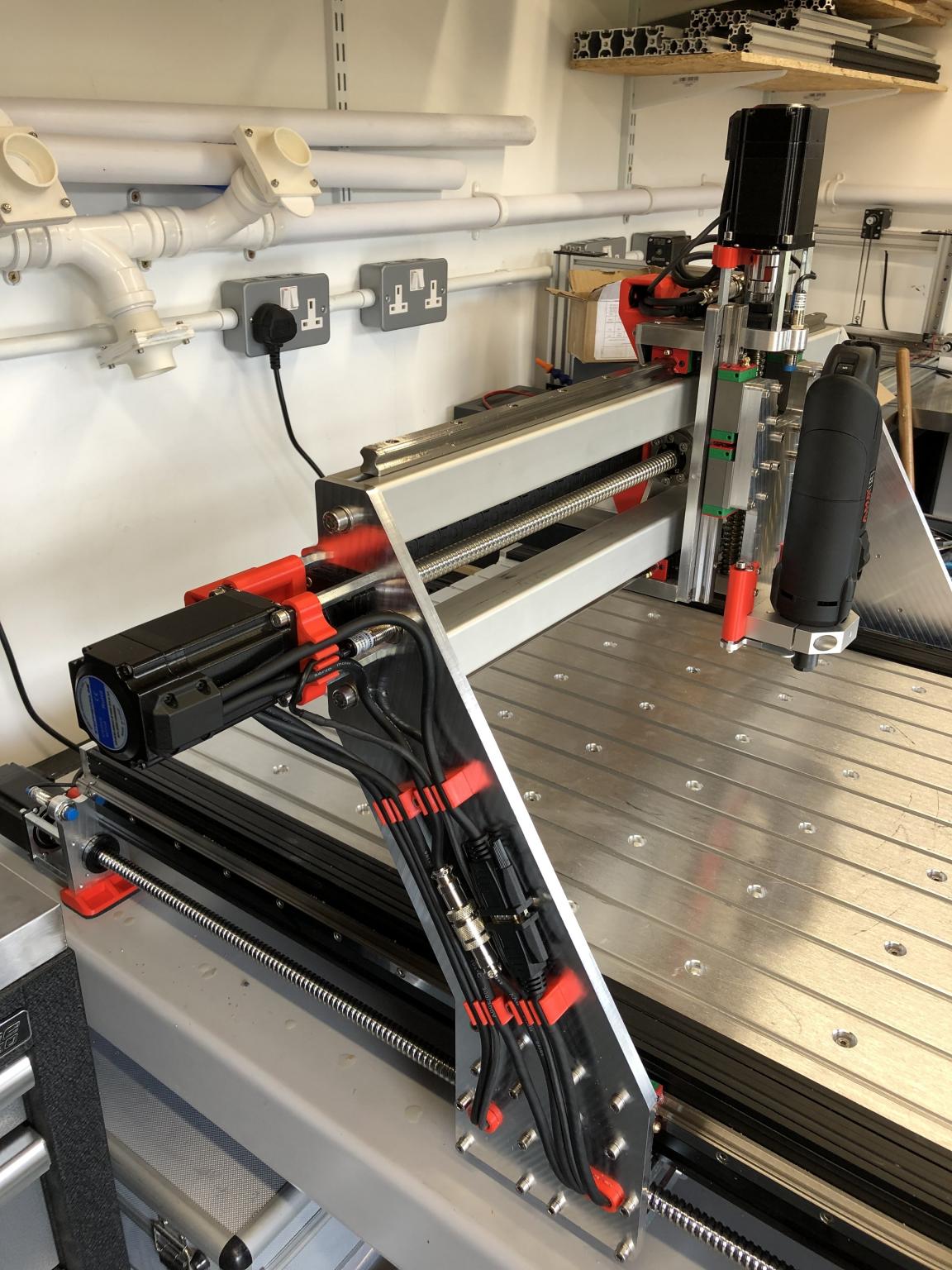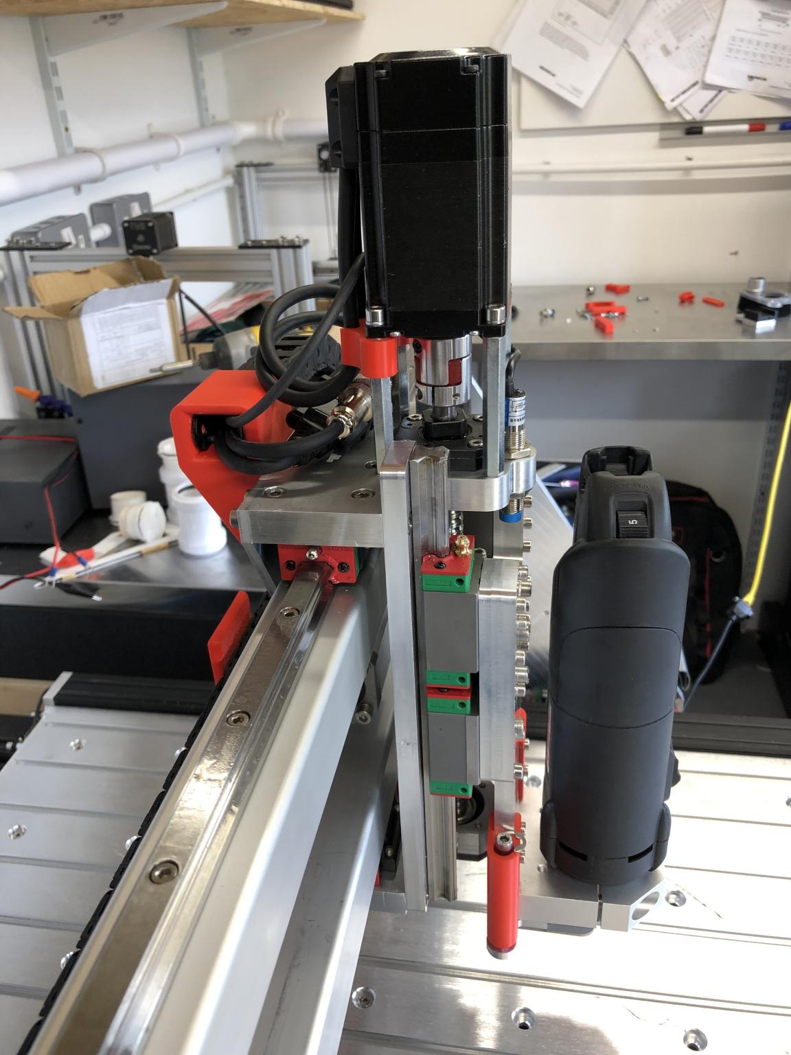 If you are going to use a bigger spindle then you might want to redesign the side plates by doubling them up. I only had a Stepcraft D800 to make parts for my machine so I was limited to what I could cut and accuracy.