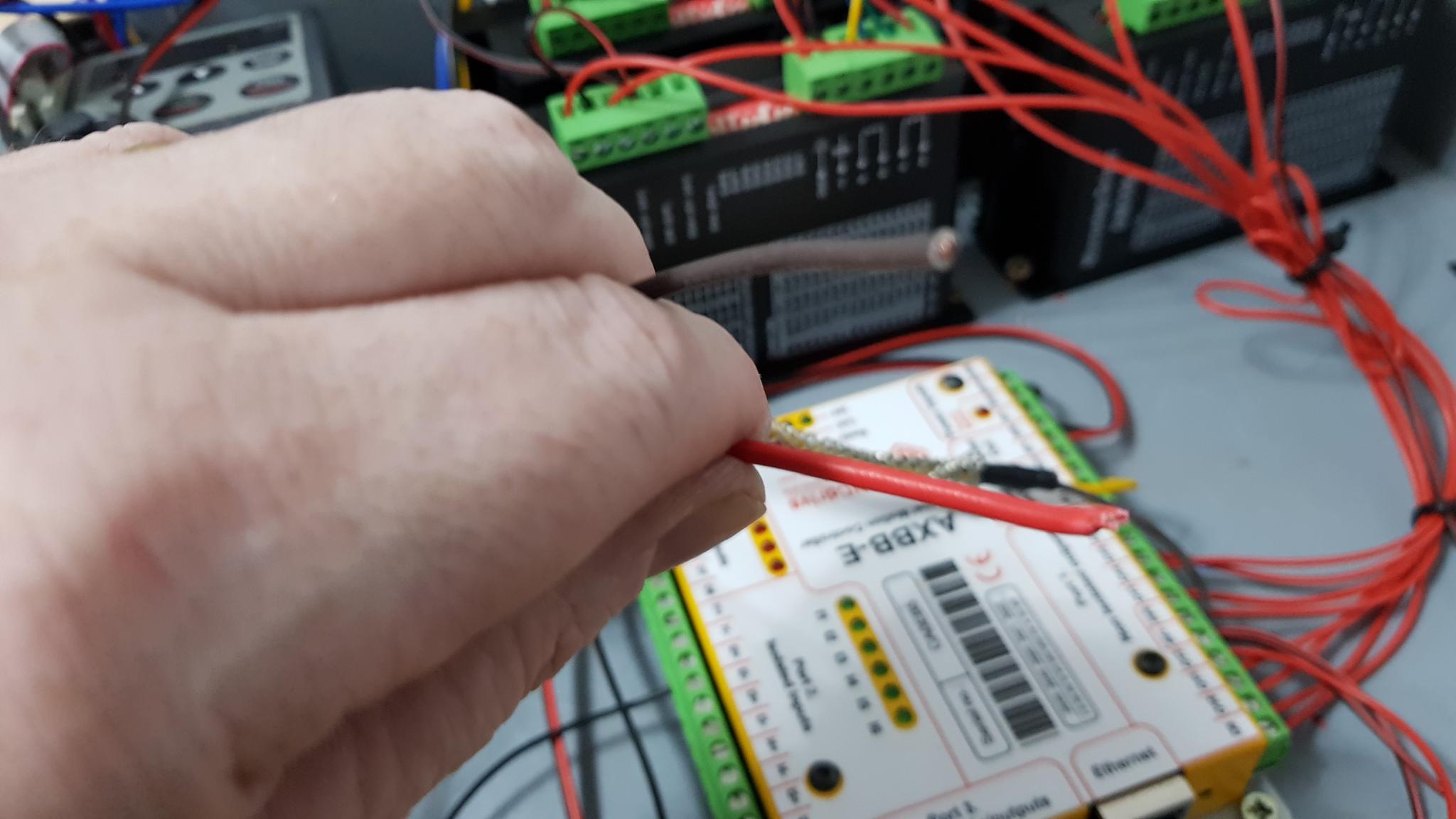 been having a go at building onto the AXXB-E attached are some pics and would like advice as to were I have gone wrong on the stepper drives, also the 3 wires lying by the AXXB-E are from the VFD av1 grnd and +10v were do i attach these to the AXBB-E, also emergency stop and pump.