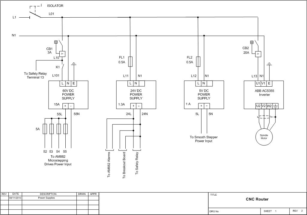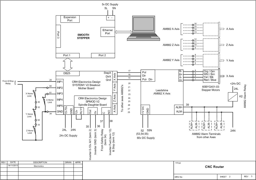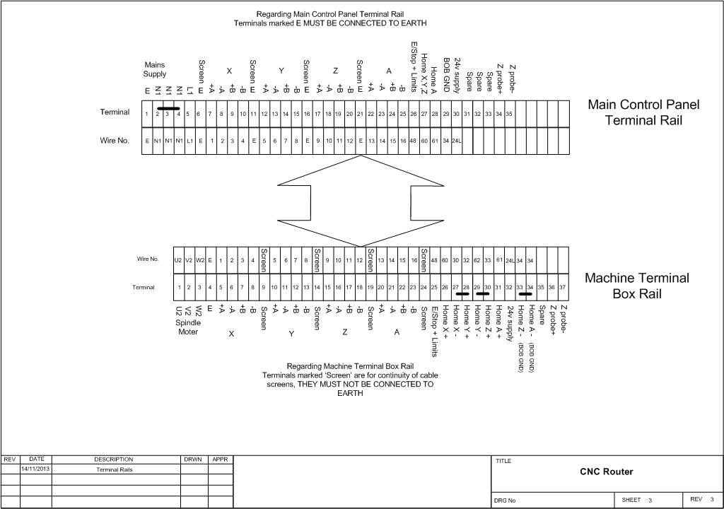 In my panel all the low level signal wires go in the right hand vertical trunking while the stepper motor and power wiring are in the left hand vertical trunking. The stepper motor wiring and spindle motor wiring are in screened CY cable, all screens earthed at the terminal rail and nowhere else.