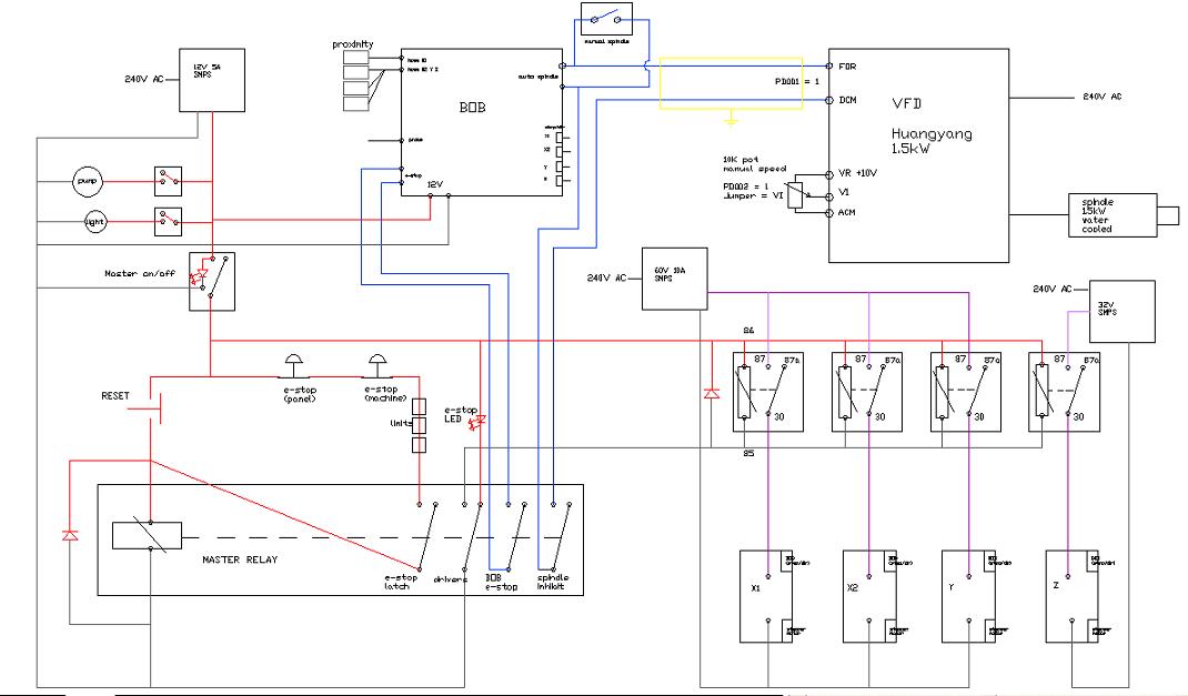 Very pleased that it is working as per my original electrical plan. One thing that bothers me is that if I power up the spindle manually and there is an estop then the inhibit relay will tell the VFD to stop. All good except when I reset the fault the spindle will come on straight away. something for me to watch if I use it manually
