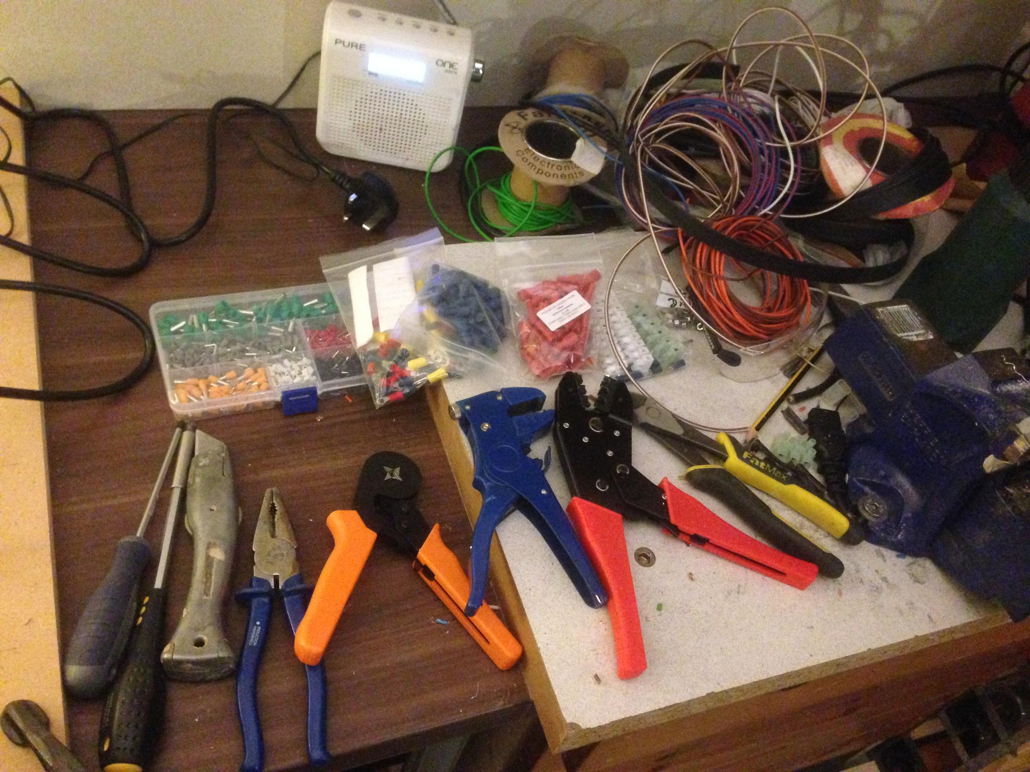 Tool collection so far - That bootlace ferrule tool (orange) makes a really nice job of the cable terminations, thank you to those who recommended that route: