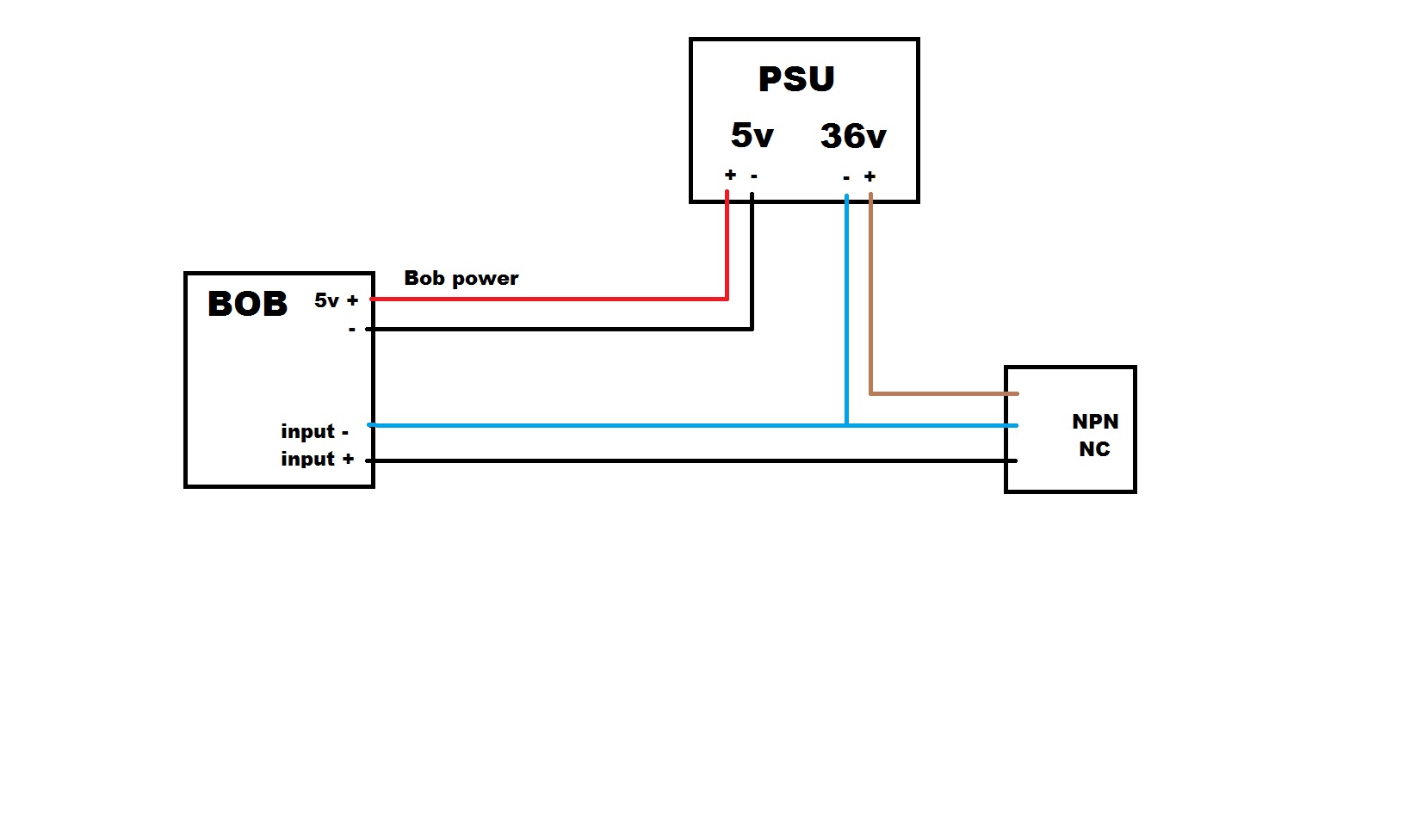 My BoB is powered by a seperate Transformer which has a duel out put of 5 v0lt and 36 volt