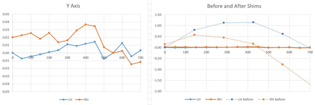 I initially started aiming for a 0.25mm deviation over the Y-axis but blew past that on the first attempt, so just did 1 more iteration to see how good I could get it, and ended up at 0.05mm deviation from a flat plane. It was almost 3mm when I started.