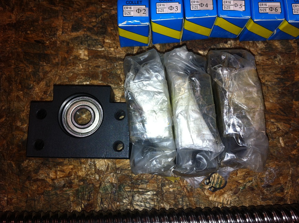 • Z axis ballscrews 415mm long with Ballscrew, ballscrew housing and Fixed and floating end bearings and housings (Chai)