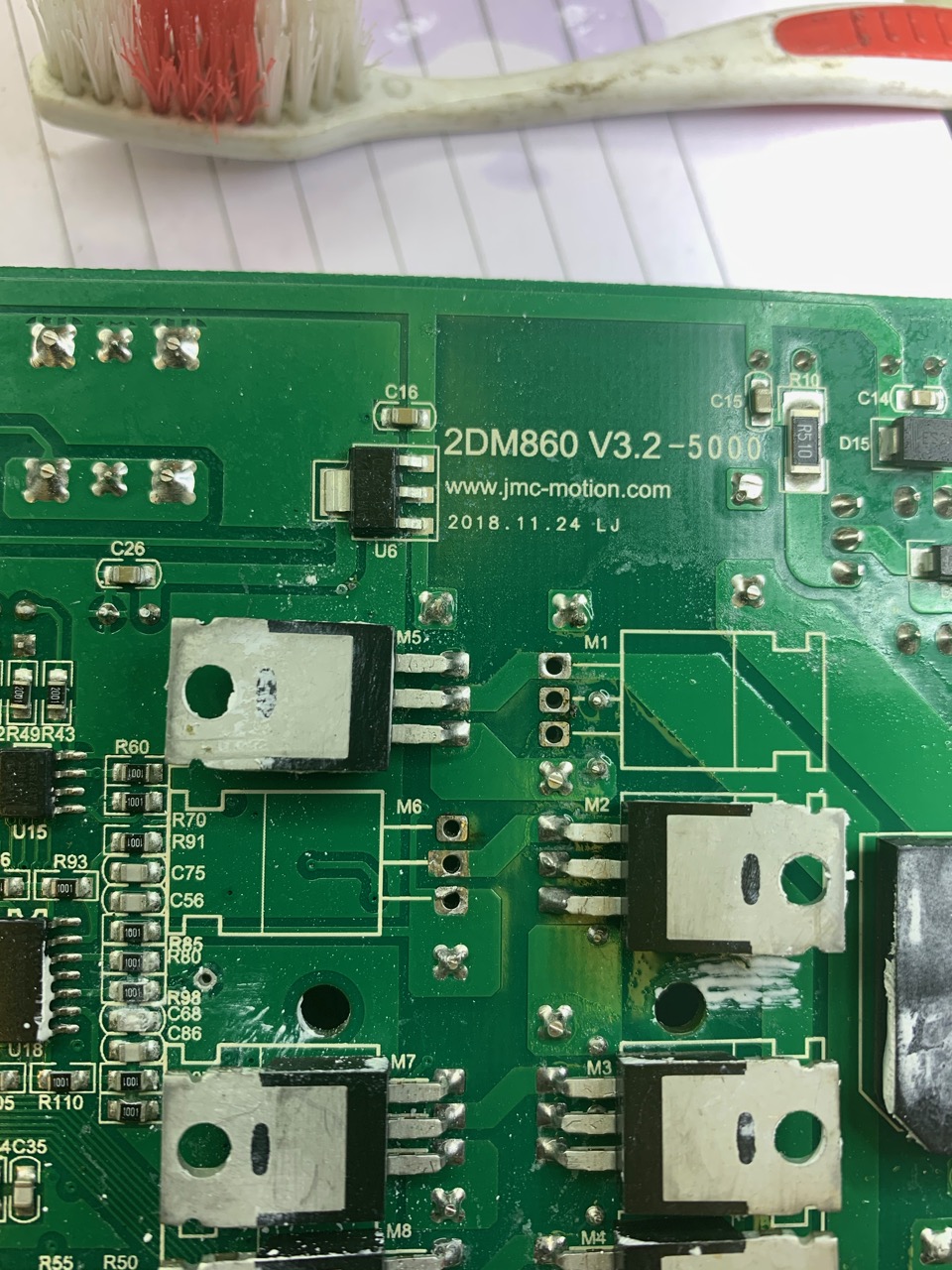 Next, repeat for the second device. Then clean up all the old flux with a bit of IPA and the wife's toothbrush.