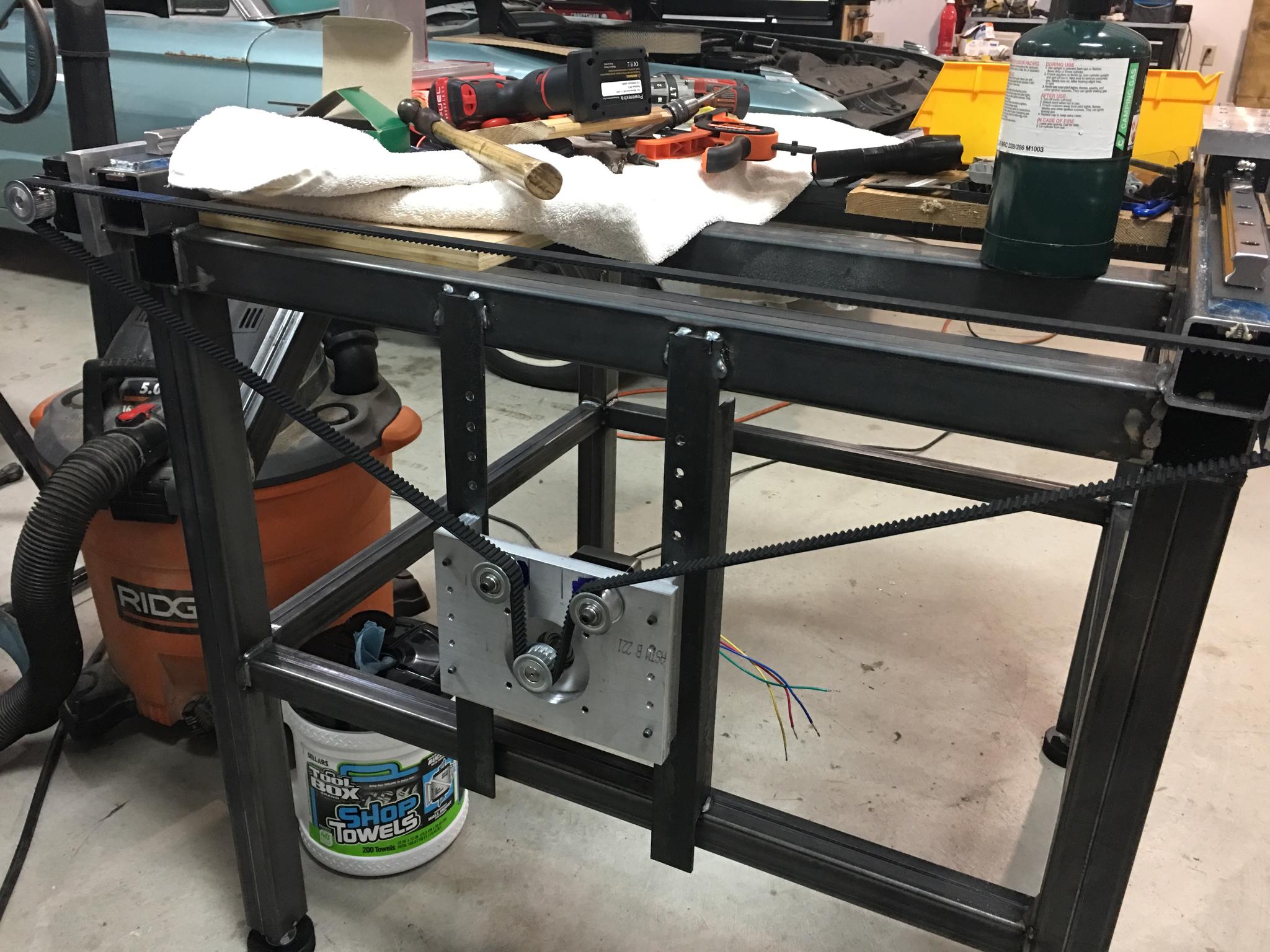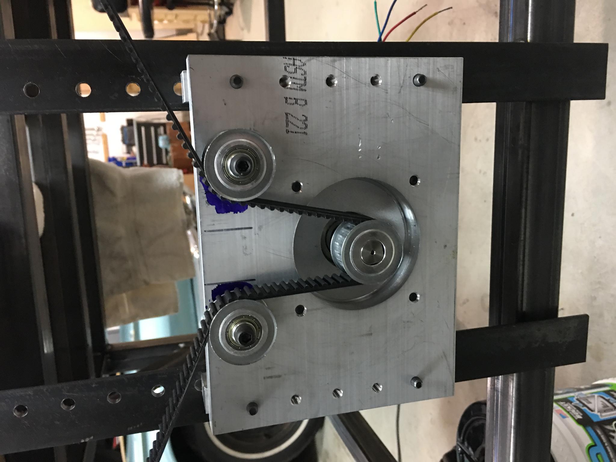 Says 1090 in-oz. (I get 7.7 Nm) and 4.1mH inductance. My intention is to mount it underneath and between the 2 ballscrews and come up with a timing belt arrangement to drive both from one motor. If I can get the Y-axis moving under power, it will give me encouragement to drive forward.