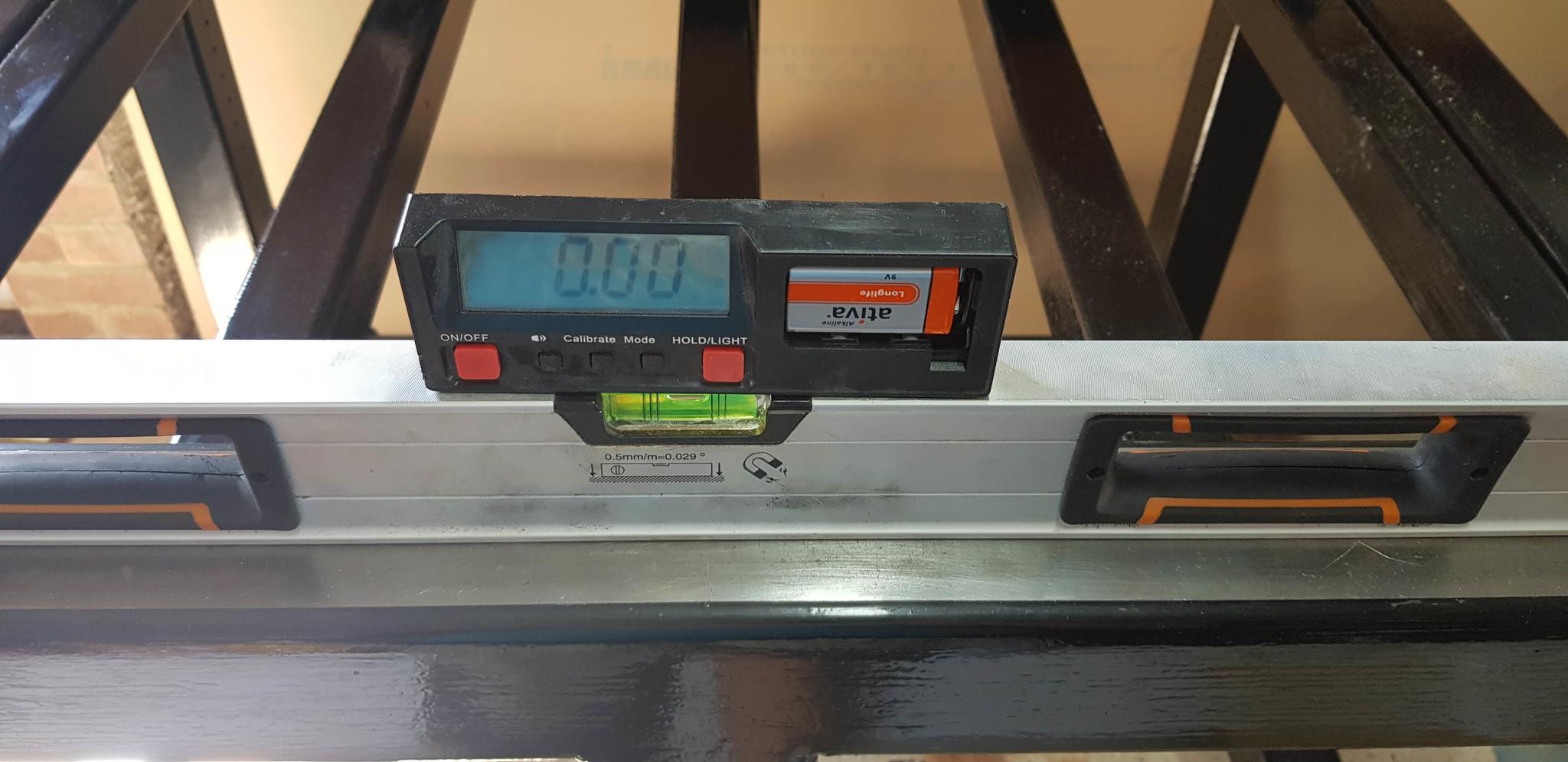 So, first off, I started by levelling the base frame on its levelling feet. Turns out my longest spirit level has an error in it, and I wasted a good half hour chasing the damn thing until I figured out it changed when rotated 180 degrees. Oops. Trusty digital spirit level to the rescue, which was much easier to flip round every time.