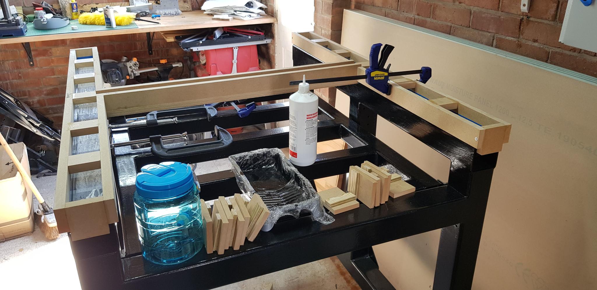 The current challenge on the base frame front is the epoxy framing and pour - I've sourced the MDF side pieces and cut to size, time to start gluing and siliconing!