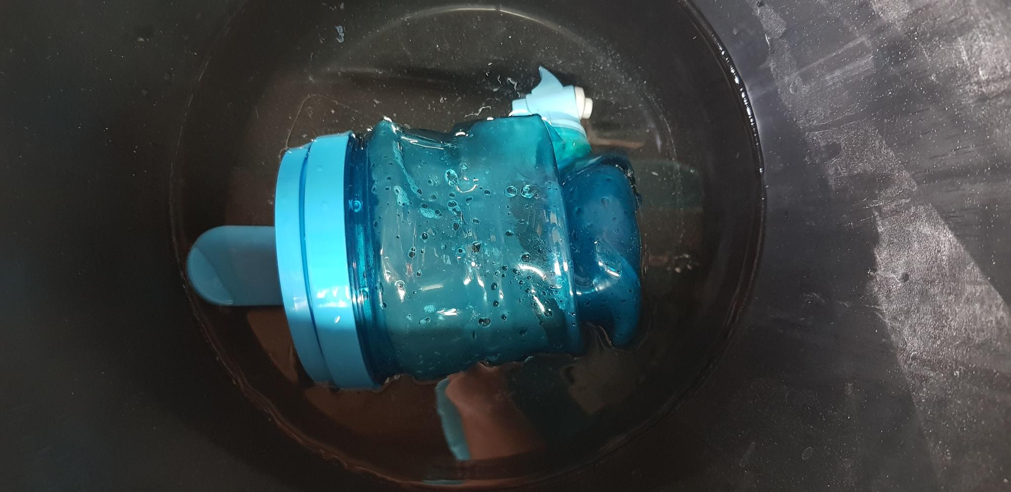 Heres the good bit (that was poured first and attended to) - We then decided to coat everything but the bridge in clingfilm, so that nothing can fall into it, and then we retreated putting the mangled bottle in the emergency bucket.