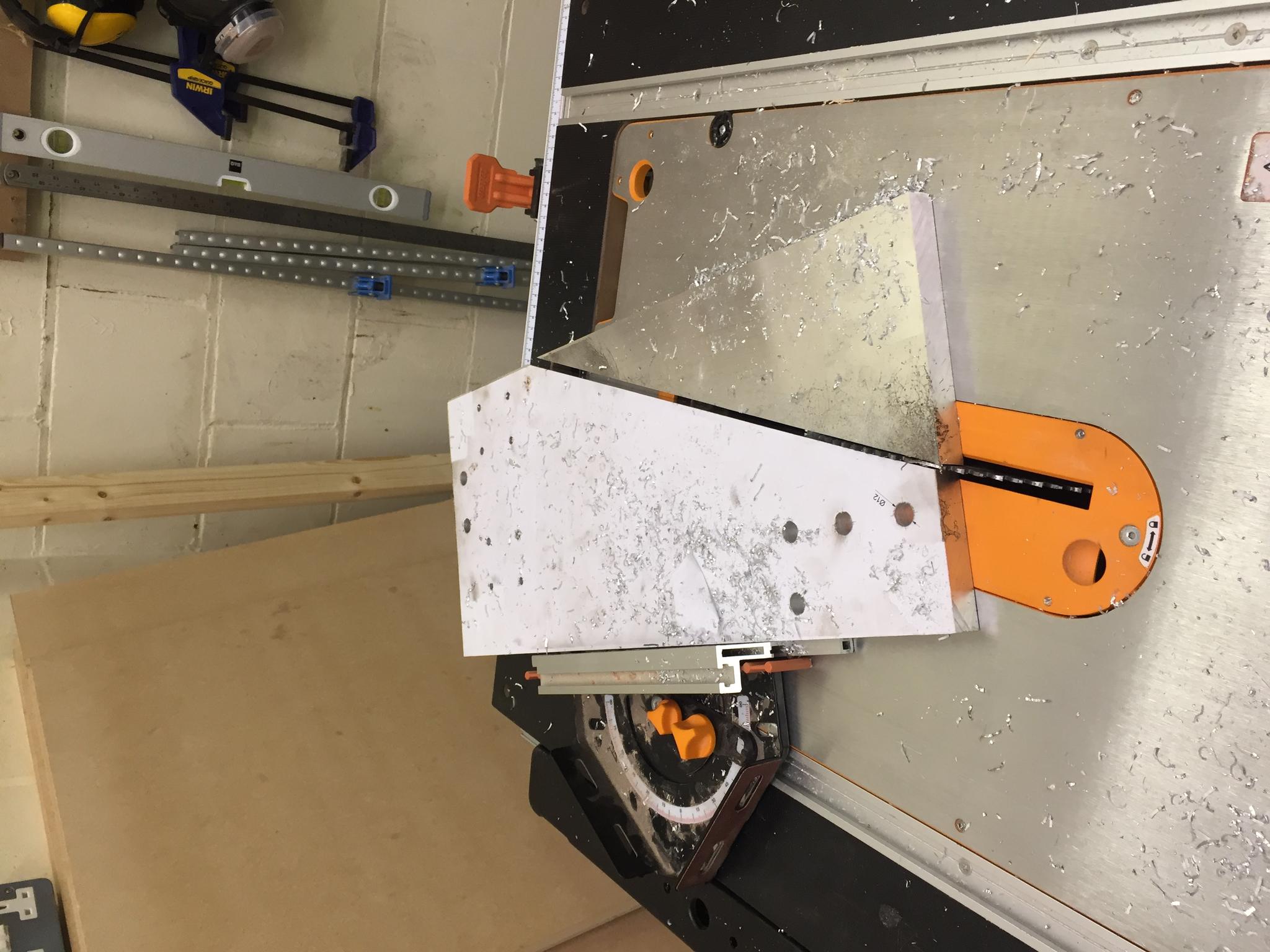 Cut angles into the side plates using a table saw with a cheap aluminium blade I got from screwfix. Worked perfectly: