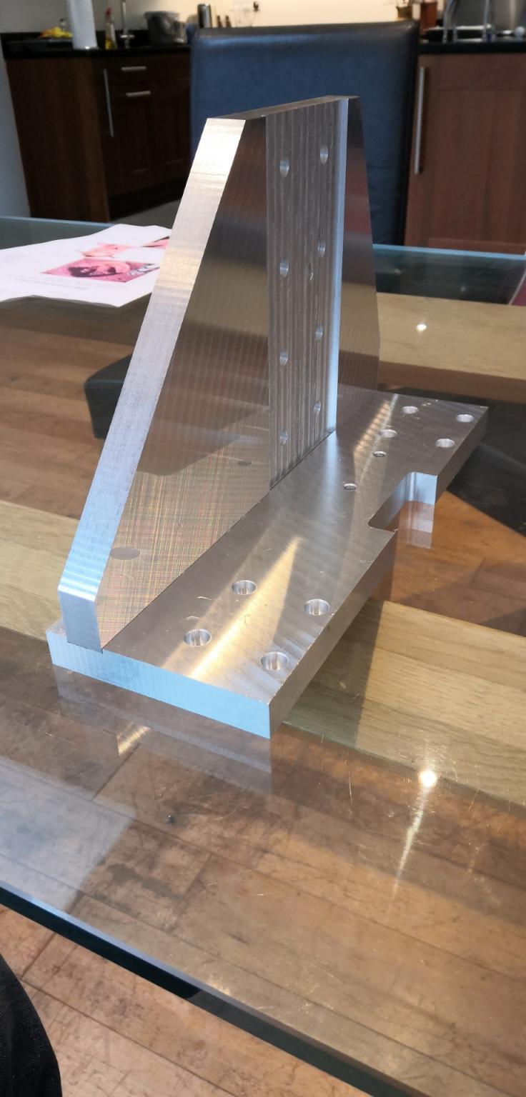 Hi Kit, I cut them both in one sitting yesterday, i measured the effect of the sag over the saddle with a DTI 4mm offset from the spindle (I used an 8mm endmill for the facing operation) whilst lifting the weight of the overhanging part, didn't really have any effect with the gibs tight as you would expect given the table pivots on the saddle. Probably not an acceptable way to fly cut but with a small endmill it works. I thought about slinging the overhang to my engine hoist but the problem with that would have been as the table is moved to the other end you would need to reverse the force since it becomes overbalanced the other side.
