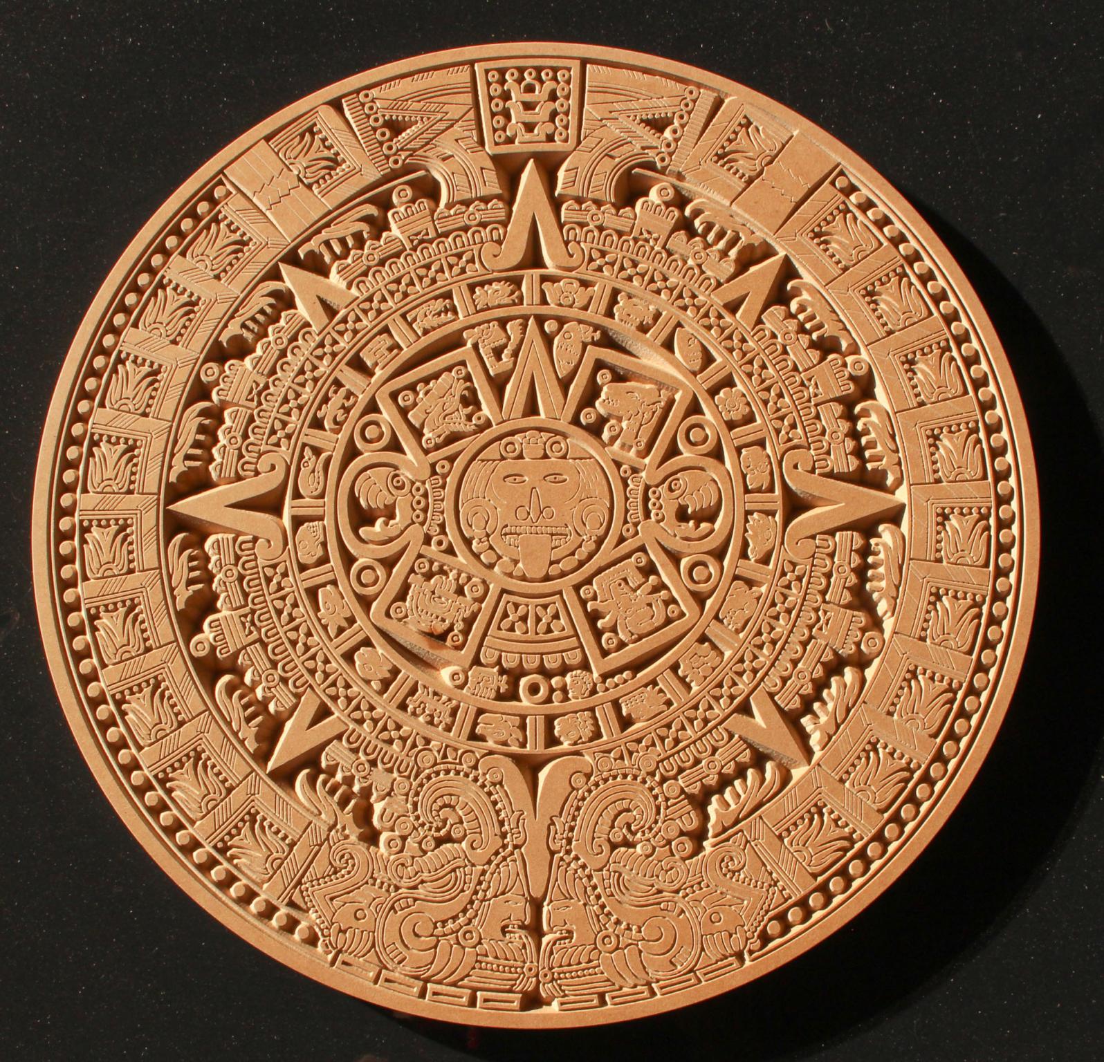 Thanks to Jazzcnc sending me the g-code I can now apply for membership of the Aztec Club. The result is 400mm in diameter cut on 12mm MDF, I used to 60 degree cutter option that Dean sent me. It took just shy of 4 hours to cut. The cooling water for the spindle got to about 40C but no hotter. The whole machine was happy to run continuously for that long without any problems.