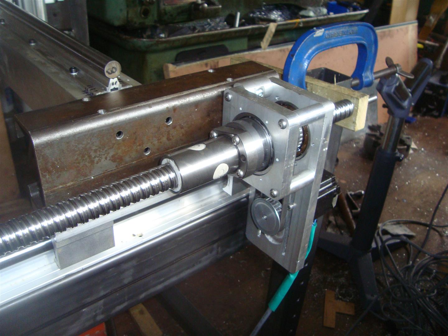 I just mounted one ballscrew to the frame with a couple of G-clamps and some wood, so not the best but it holds. So with one ballscrew and 3nm motor I'm getting at least 12,000mm/min! It might do more but things are wobbling a bit as I have not fixed the X-axis linear rails down to the frame.