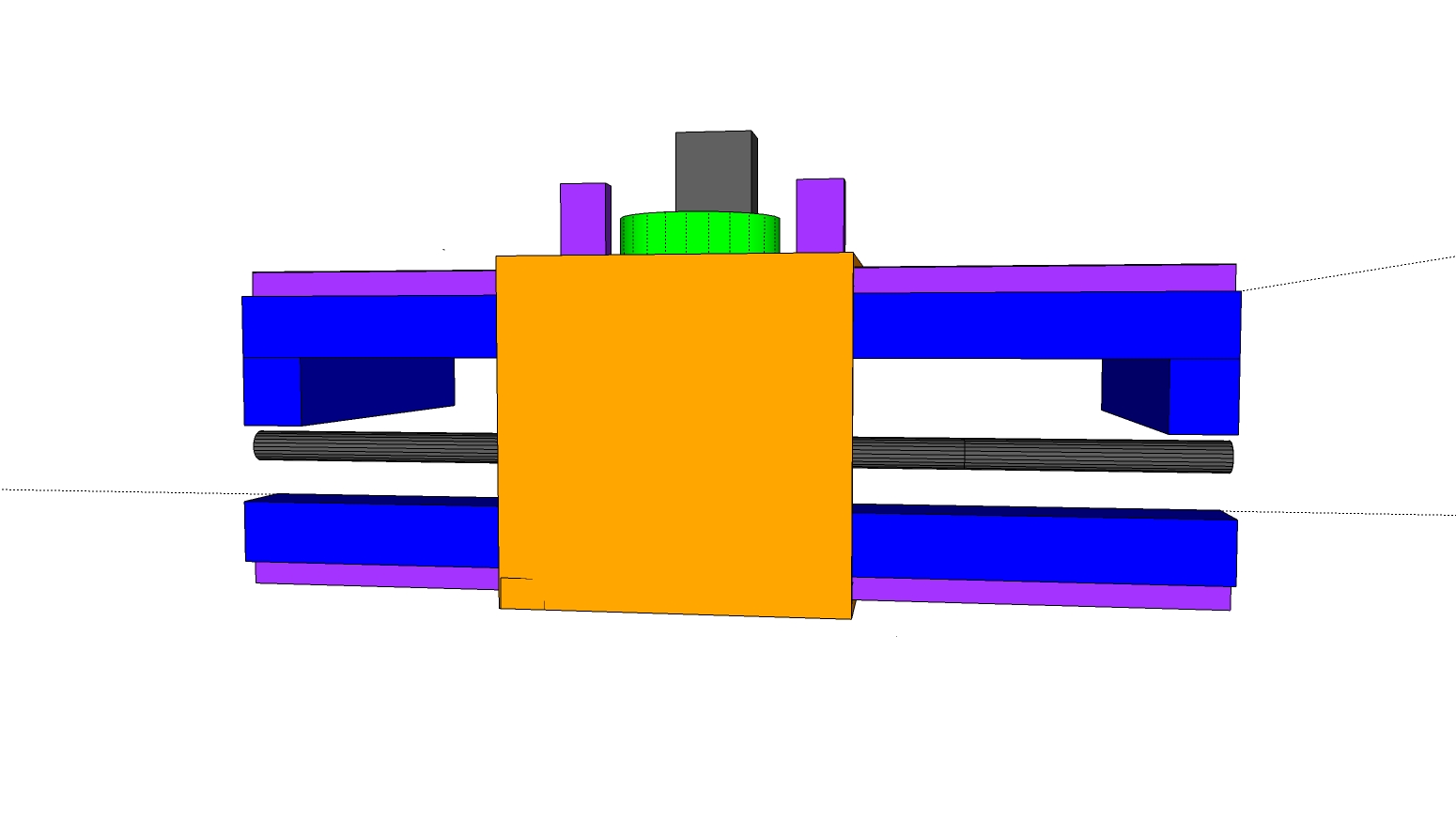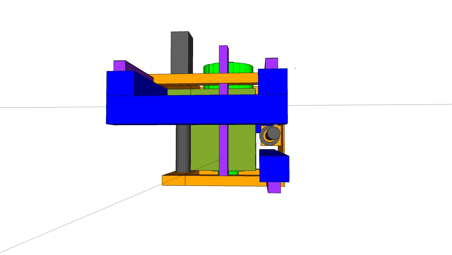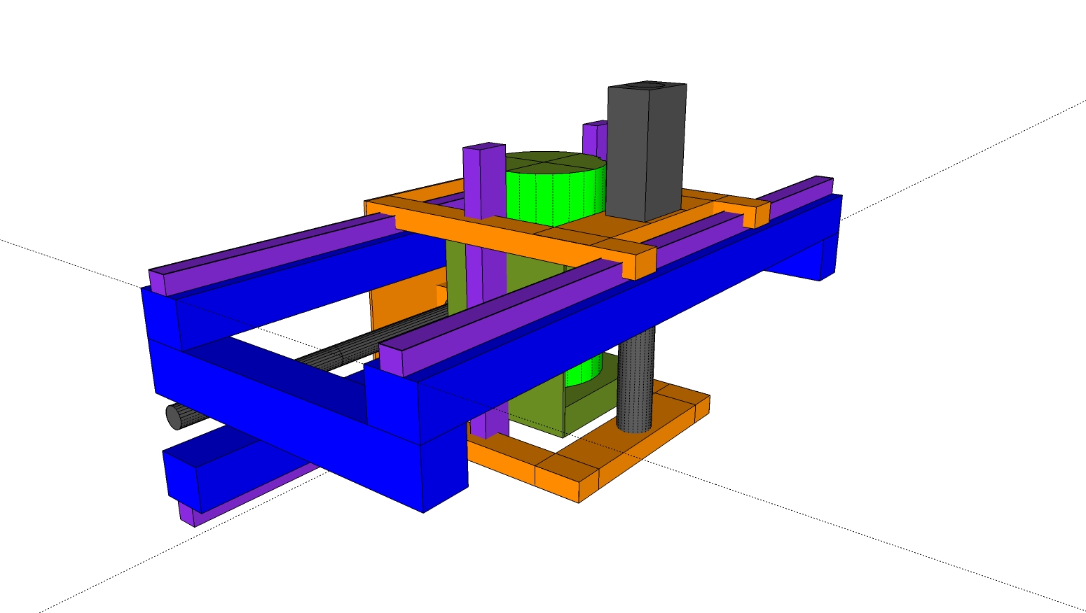 I've left out some of the elements so it can be seen easily. (like the colums parralell to the Z ballscrew joining the upper and lower Y axis motion, joining the upper and lower blue box sections etc.) and I've shown as bars things that could be plate etc. The purple areas are the supported rail, any other questions just shout. If you want to play with the Sketchup file PM me and I'll send it over as Google wont let me upload it, they must have standards! lol.