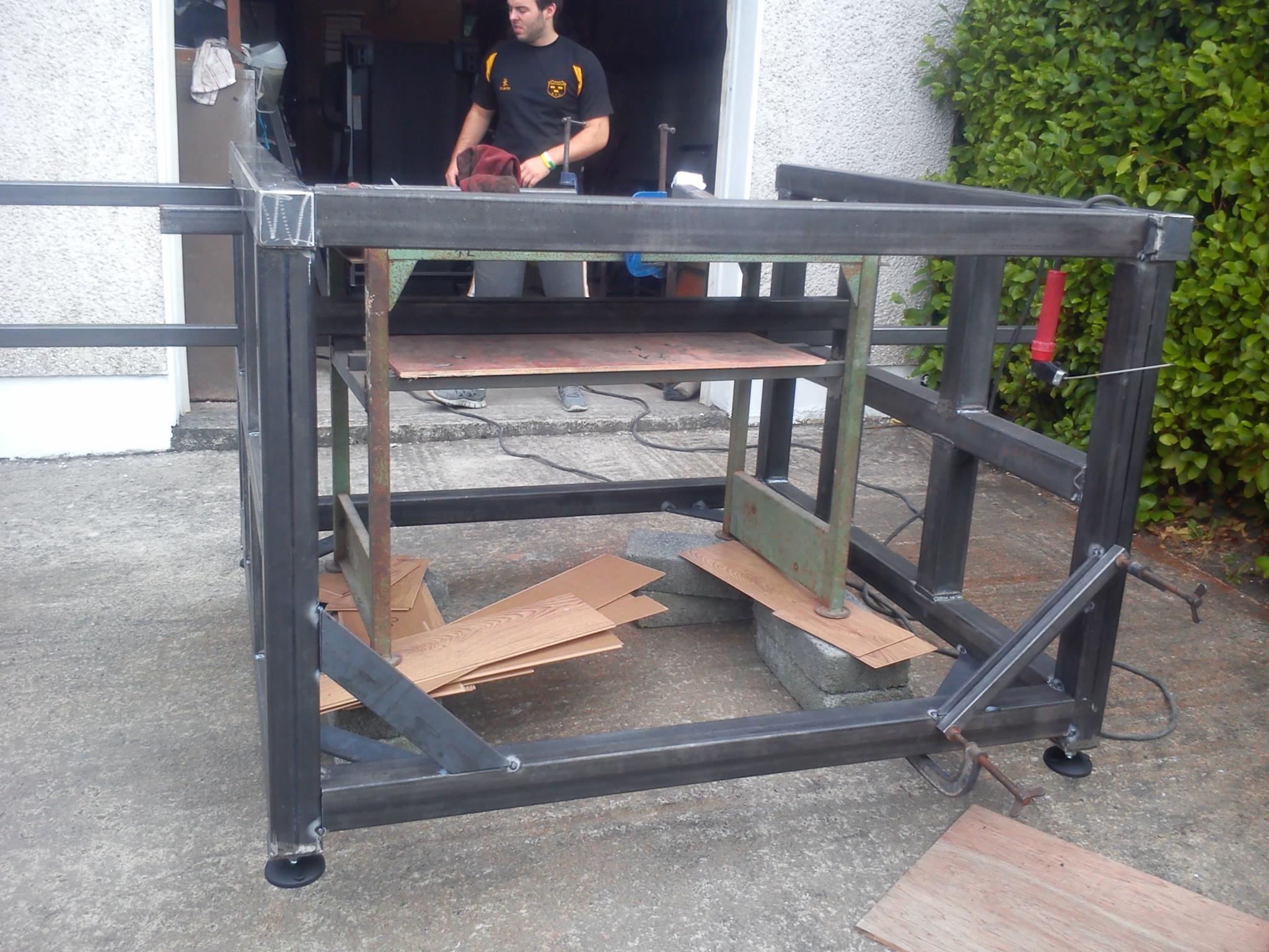 the frame is nearly finished. i have to weld in the table locators on each side and give it a lick of paint. it looks big ( it is ) but i said to myself that i may need upgradeability considering the growth of the DIY cncs over the past number of years and the bigger routers that are coming on stream.