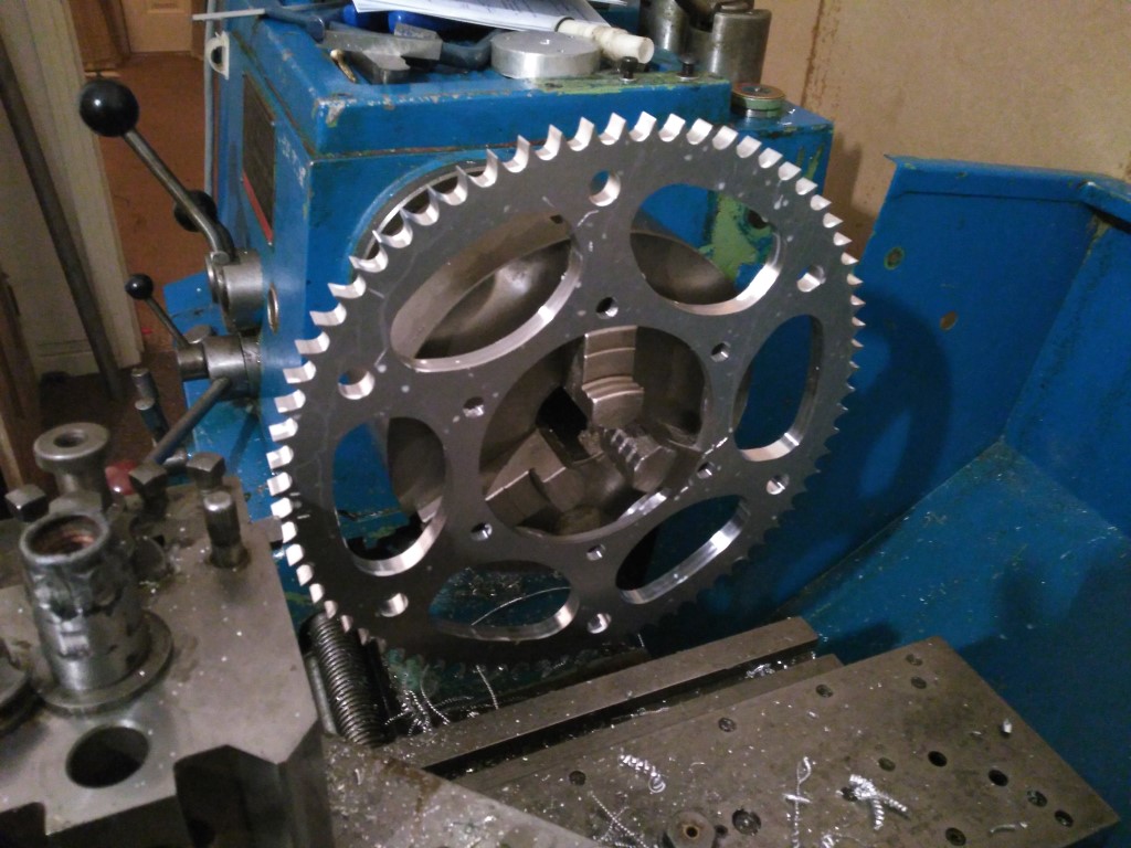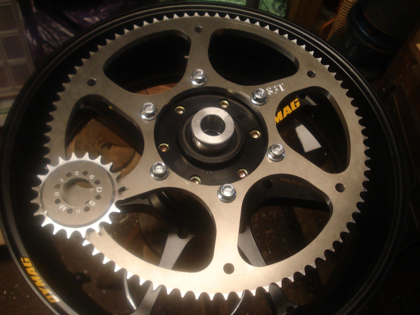 Various sprockets, water cooling manifold, front axles and chain guard: