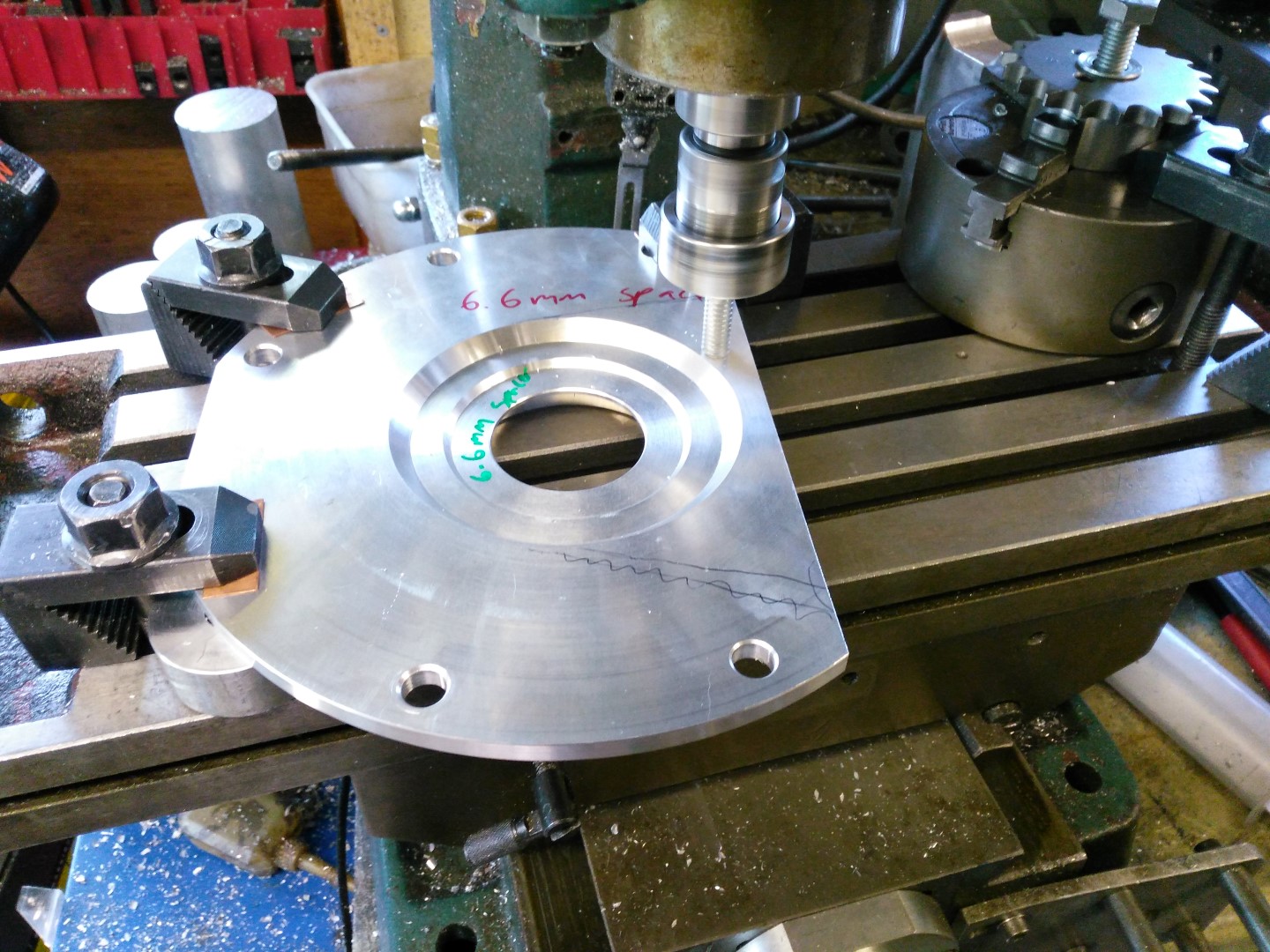 I was going to post a few pictures of parts I made just before I left but didn't get time, so I'll post them now along with a few photos taken during the races. Except for the bearing mount, these are all parts I machined in the 1 week leading up to the TT: