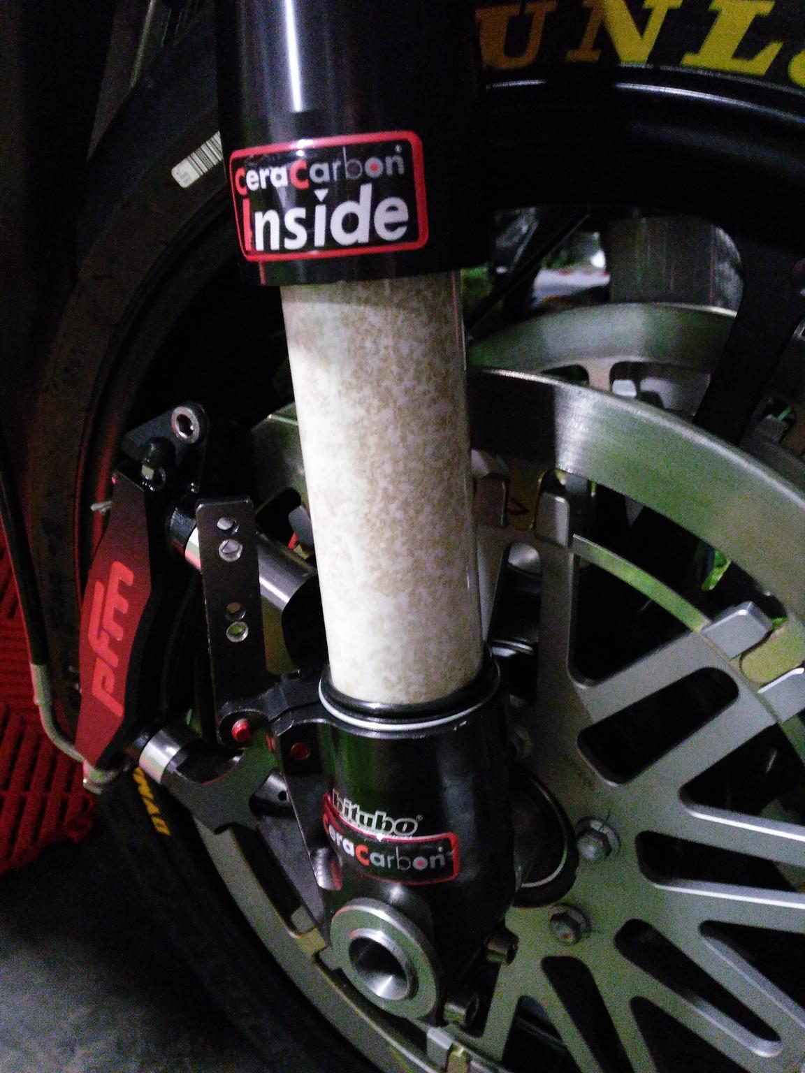 We got some interesting new pistons in the suspension - made from carbon fiber with a ceramic coating. It saves 1.6kg in unsprung weight! CeraCarbon have done it for us to test: