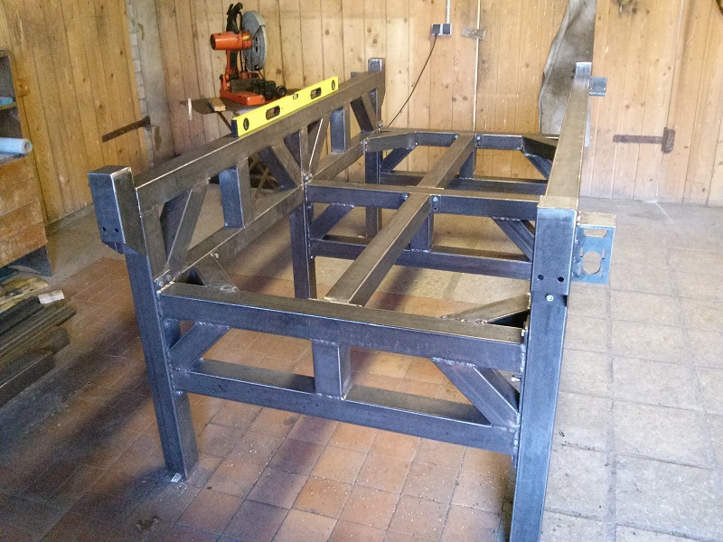 So I'm all welded up and cleaned for painting. First plan was to weld it all together but ditched that wonderful idea. So now the frame consist of 5 pieces. Connections M10 bolts. Plenty of adjustments.