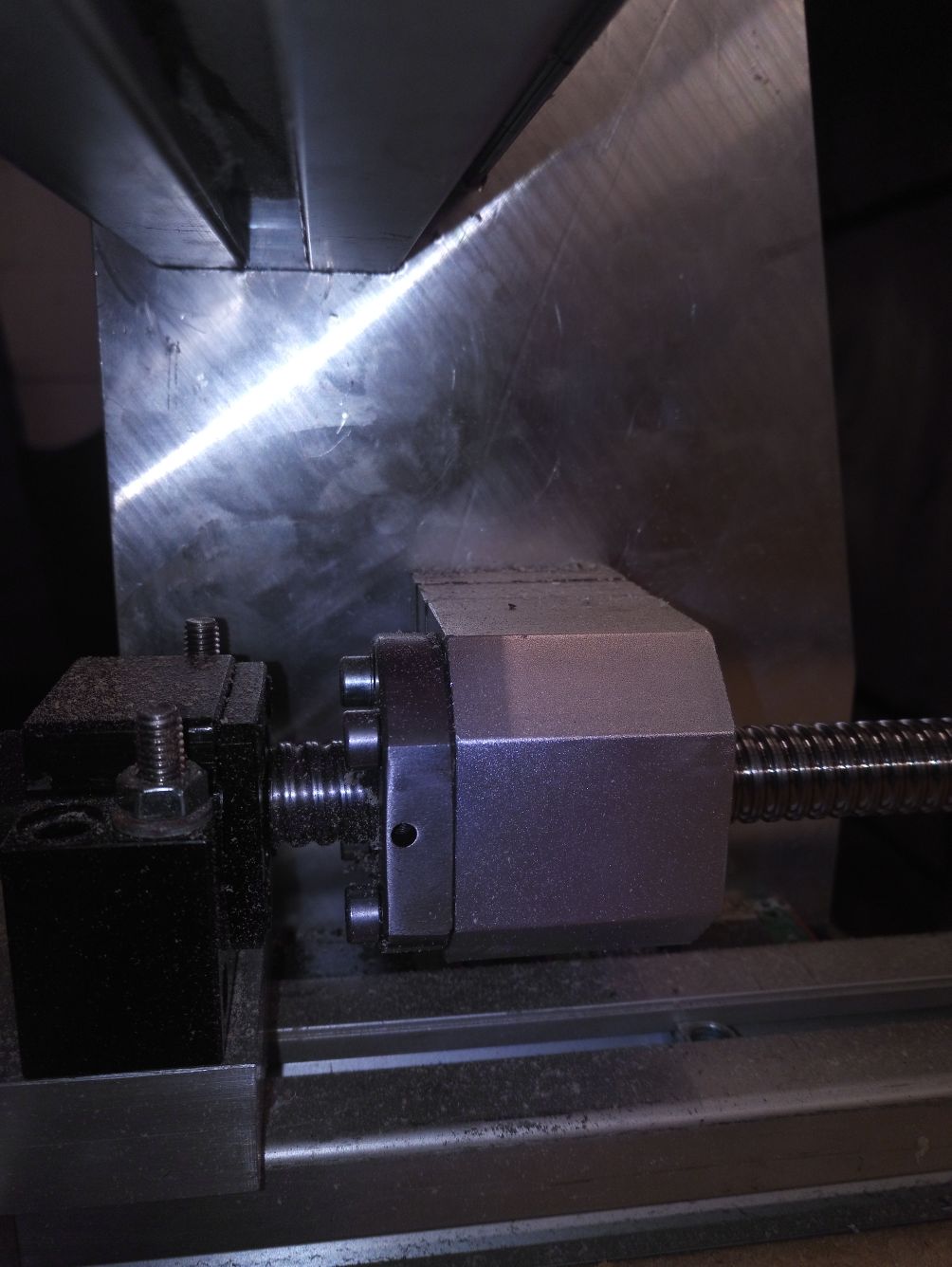 And this is how close the Y gets when at maximum travel +(700mm) although I still have 5cm to play with on the other side of the bed I think 70cm travel sounds good. It's freaky watching it plough full speed towards the end to then stop so accurately and quickly so close to the end.