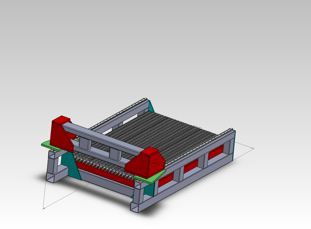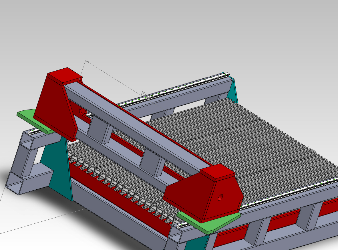 The red colour (at the gantry ) is aluminium plate 20mm bolted together