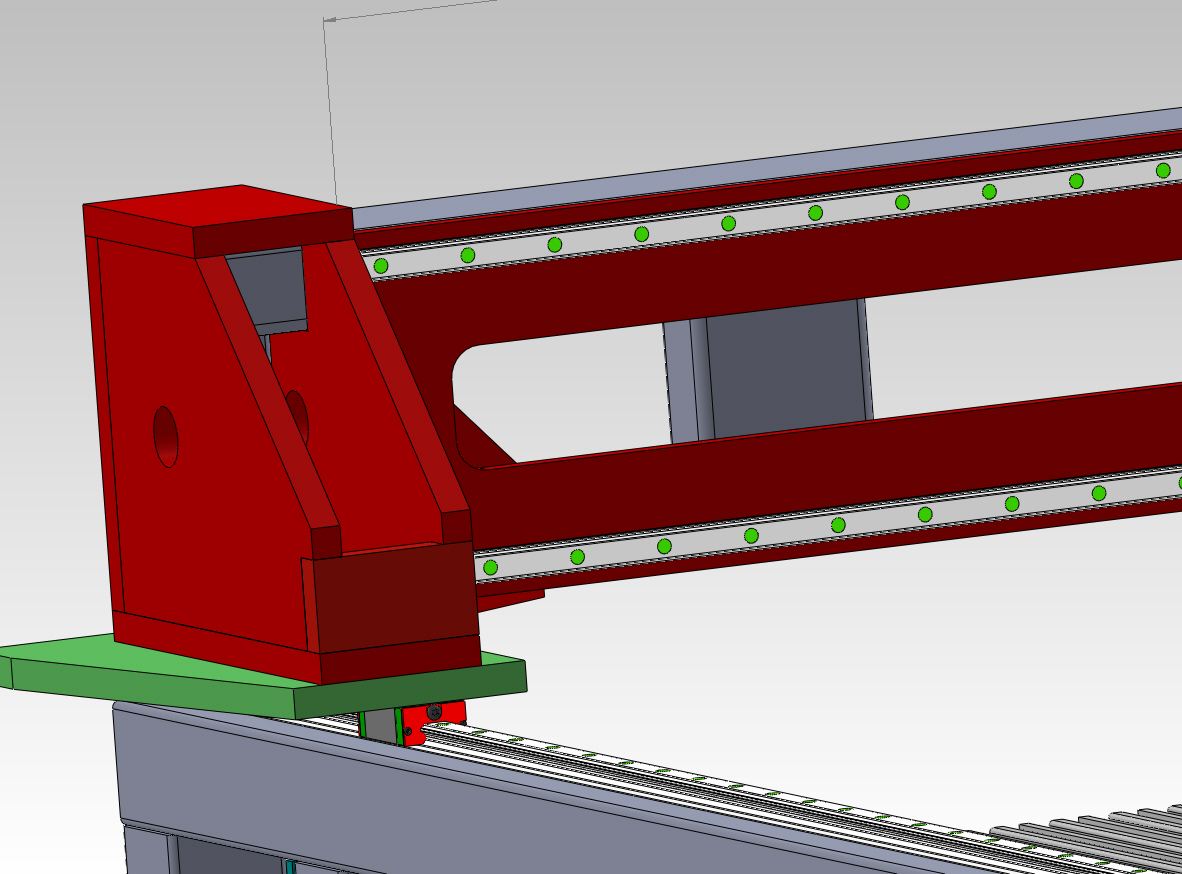 The green gantry plates are also 20mm aluminium plates that will be bolted with the carriages. Under that green plates will be attached the ballscrews