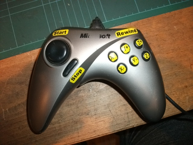 How about a USB games controller like this. Mine cost me nowt, uses keygrabber and the biggest hassle was putting the labels on the keys.