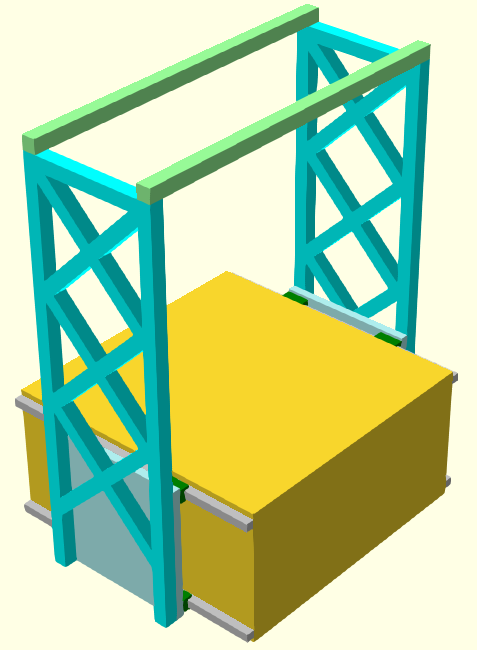 I'm thinking the base might look something like this. 50mmx3 square tube apart from where the rails connect would be 50x5. Anything thats all one colour is a welded 'frame', anything thats a different colour would be bolted together.