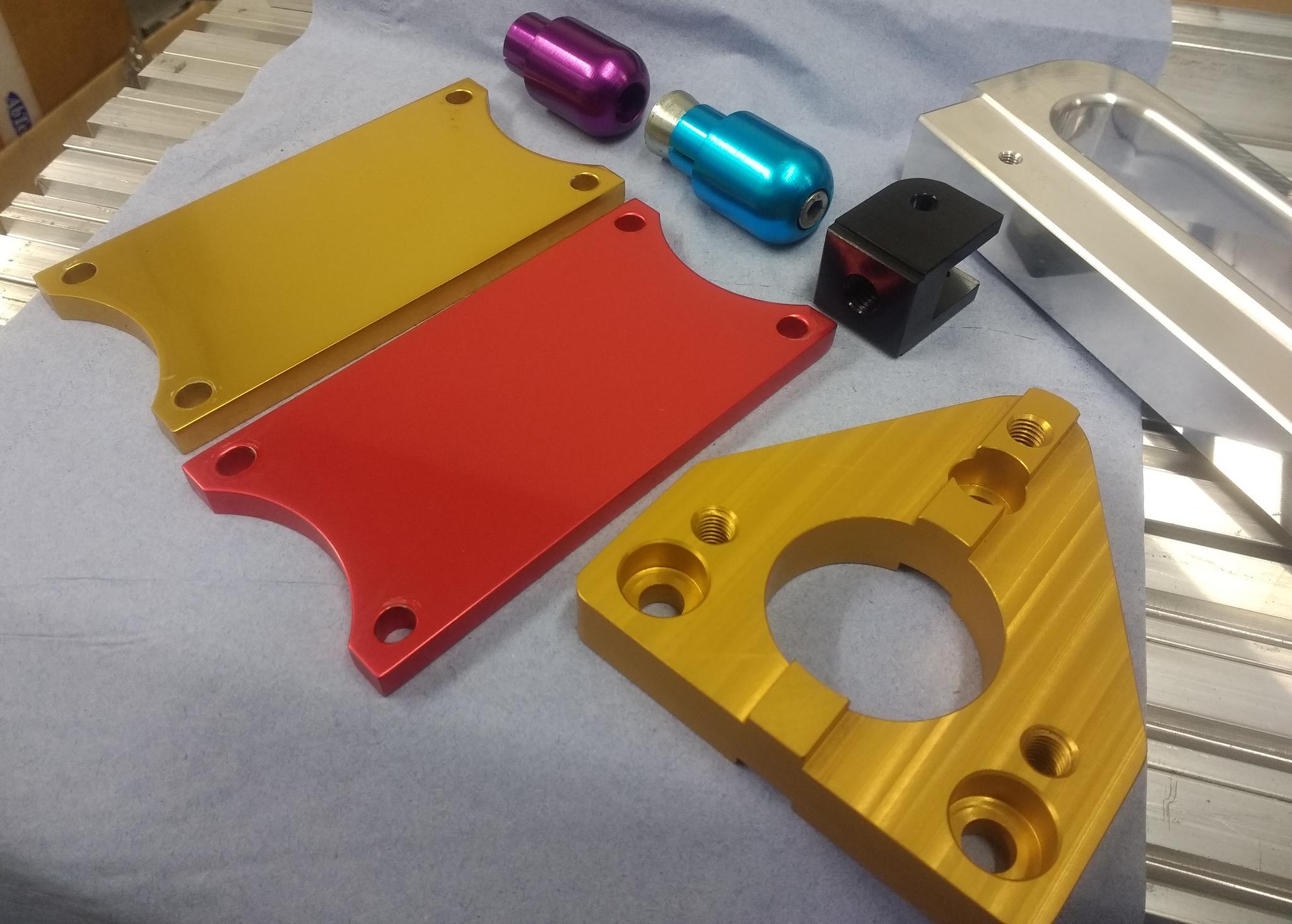 I do not agree that your parts are fine. Without seeing any images of your finished parts, I said you were using the wrong material and the evidence is those images you posted. I appreciate images can be a little deceiving online but i have seen and taken enough to hopefully know what im looking at. Yes your parts are anodised but that is a very broad use of the term, in the fact they have been dumped in a sulfuric tank with some current and then dyed. But that's as far as it goes. The finish is flat and and one one those images shows very blotchy uneven finish and a lot of surface marks. Cosmetics is as important as the function of the item in today's word if its a product people will see and use. (more so if they are paying decent money for it) I did read about you tumbling or vibratory finishing these parts. There are a ton of variables with finishing which i cant go into here but I feel its the wrong move if you understand the anodising process. (Don't slate me for saying this guys, as i said i cant go into full detail) A quick debur if necessary fine but.. the rest hmmmm. By rights parts like this you anodise off the machine. This is 2017.