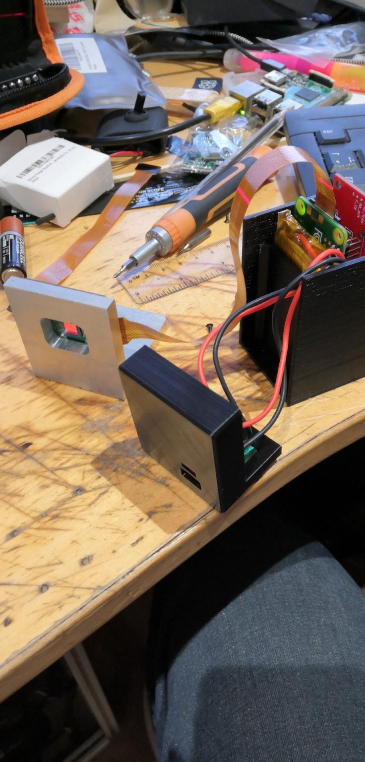 I printed a case for it today and mounted the camera to a piece of Aluminium, still need to fix it all together. It has a lipo cell on board that I salvaged from a dead rc pack, a usb charger / ups and lasts for about 3 hrs before needing recharging.