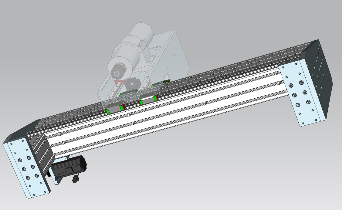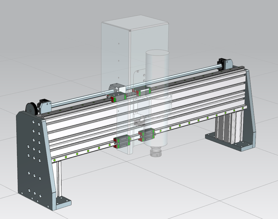 - Delta 400W servo motor with a 2:1 reduction, to limit ballscrew RPM.