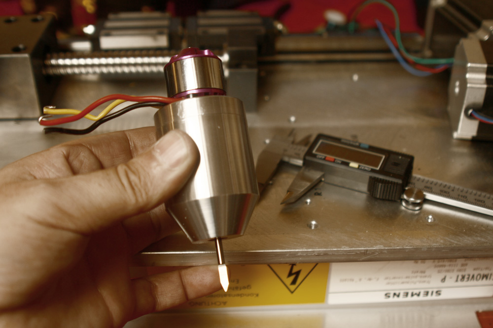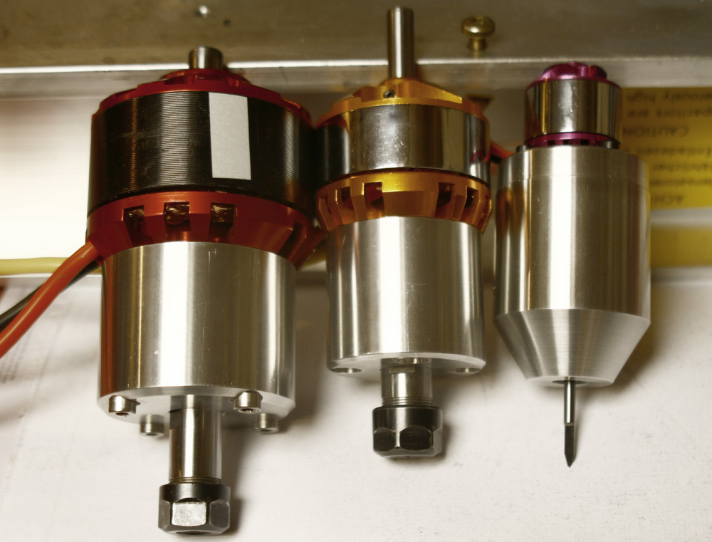 i managed to find an extra long engraving bit 115mm and mounted it straight through the motor and put three plain ball bearings at the nose