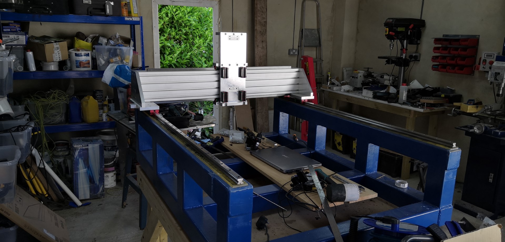 I've finally got back to my machine project. I gave up with trying to create a planar surface in one shot and as the weather had warmed up I poured epoxy, this looks like it has worked well and made a very close surface for final levelling using the laser and shimming if required.