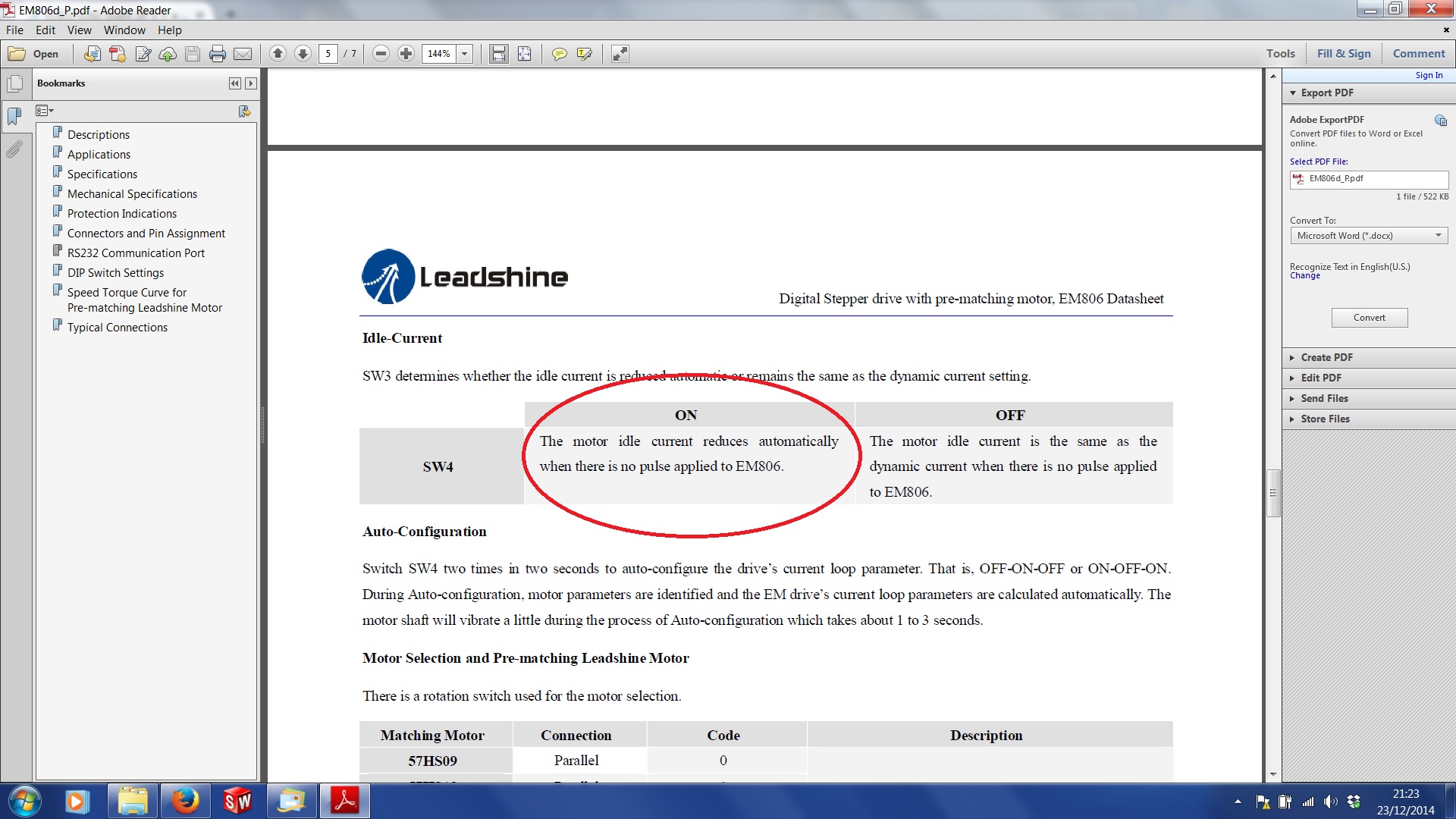 from my reading of the leadshine manual on page 14 from what we can tell it is saying switch 4 should be off for reducing the idel current?