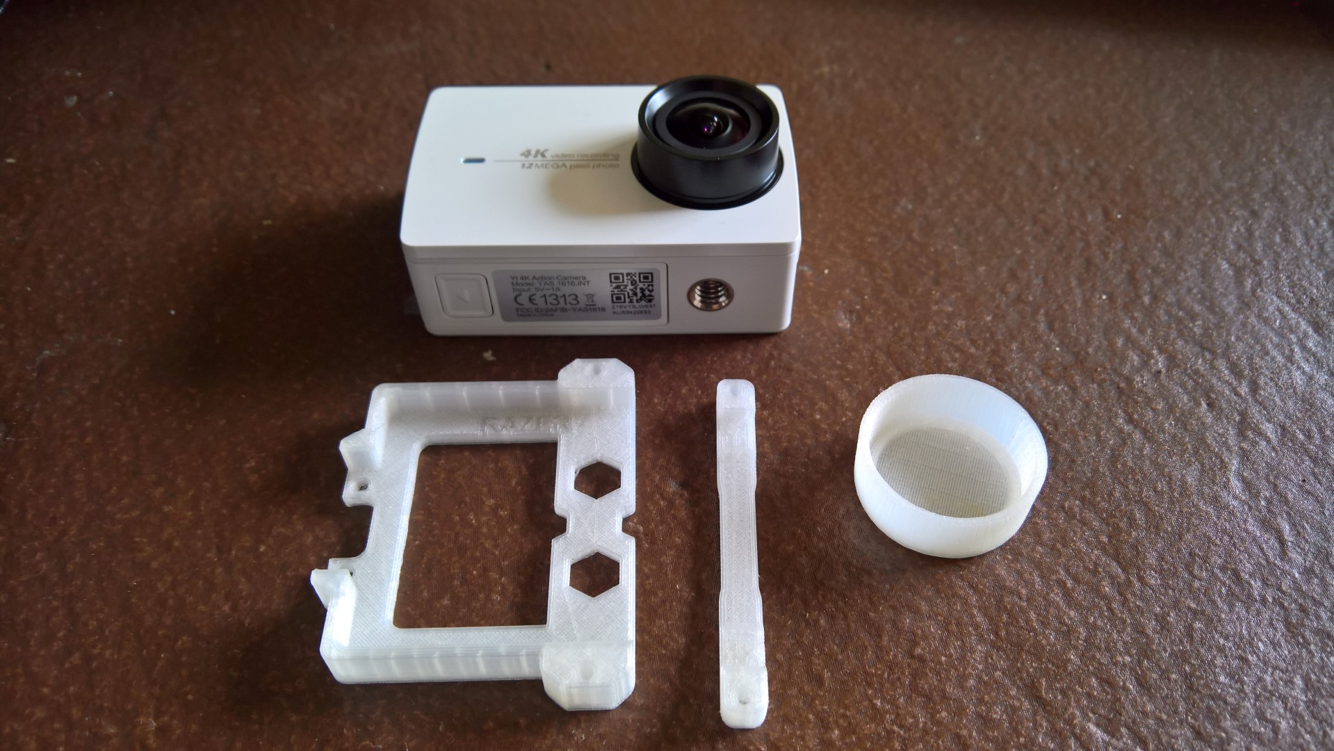 I've printed a lens cap & gimbal mount for my camera using STL files downloaded from the internet(Thingiverse) and then used Cura to generate the G-Code