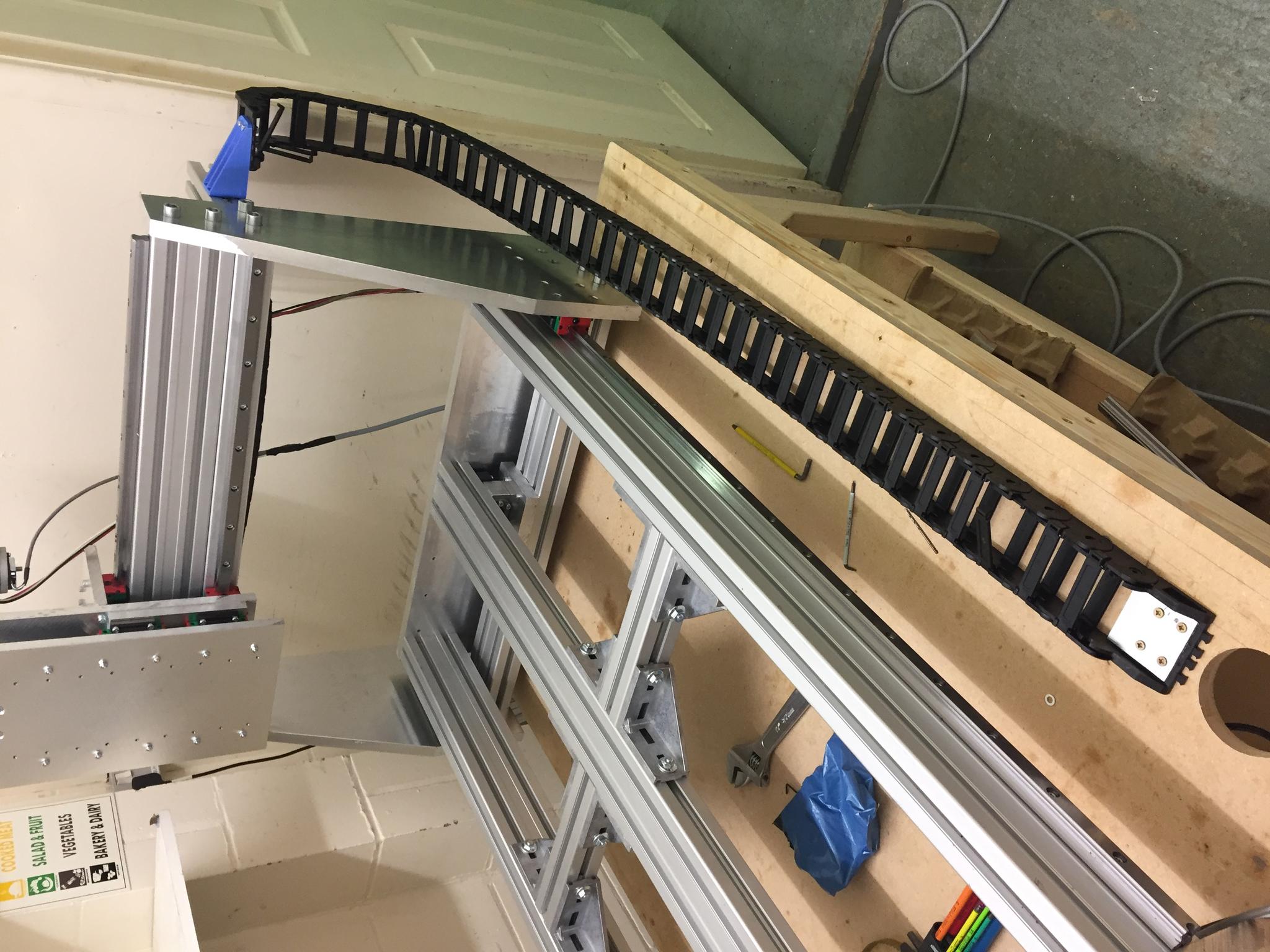 4) Back in the workshop, attaching the drag chain to some 3d printed mounts: